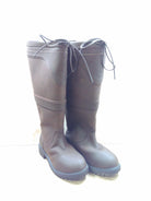 The Englander Equestrian Hera Waterproof Country Boots are designed for comfort and durability, perfect for outdoor activities. These chocolate brown boots feature a wide calf fit and are made from waterproof materials, ensuring your feet stay dry. Although they have been tried on, they remain fully functional and ready for your next adventure.