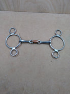 The Premier Equine Two Ring Gag with Copper Lozenge is designed to provide enhanced control and comfort for your horse. This 5.5-inch metal bit has been previously used but remains in very good condition, making it a reliable choice for training or competition. Its copper lozenge encourages salivation, promoting a softer mouth and better communication.