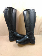 The Saxon Syntovia Tall Field Boots are designed for comfort and style in the saddle. These boots feature a sleek black finish and a wide fit, making them ideal for a range of equestrian activities. Although they have been tried on and show minor signs of wear, they remain fully functional and ready for use.