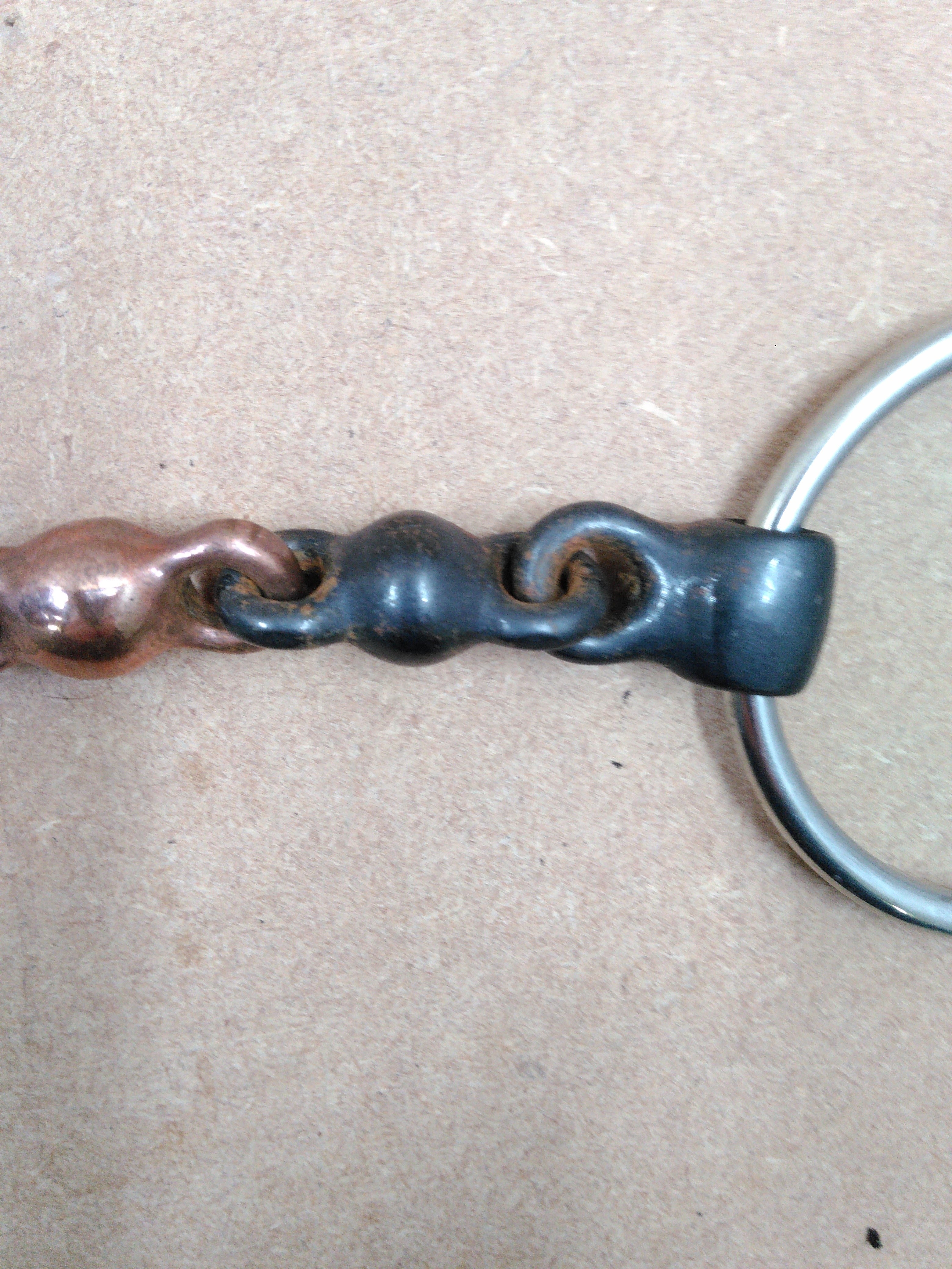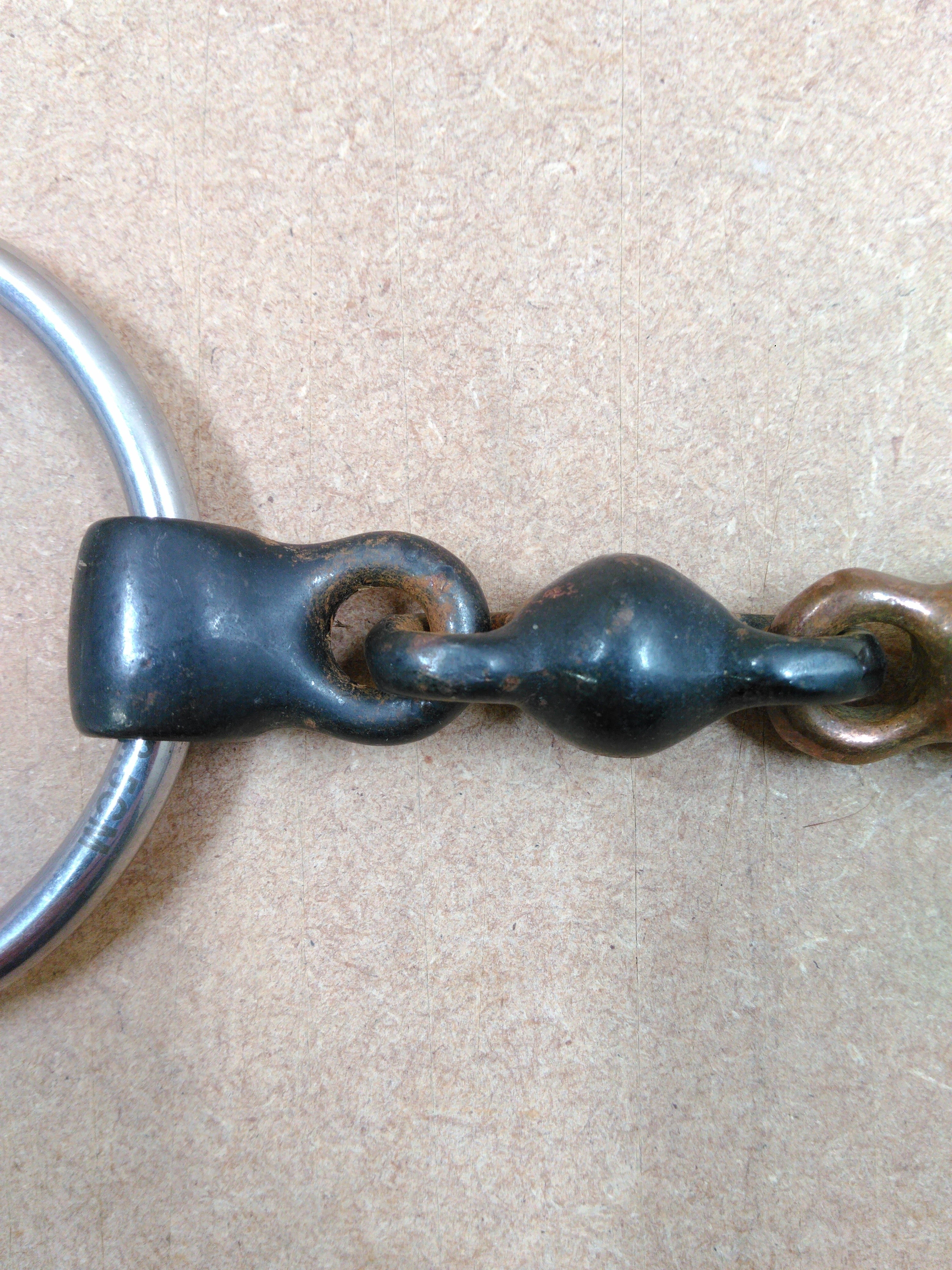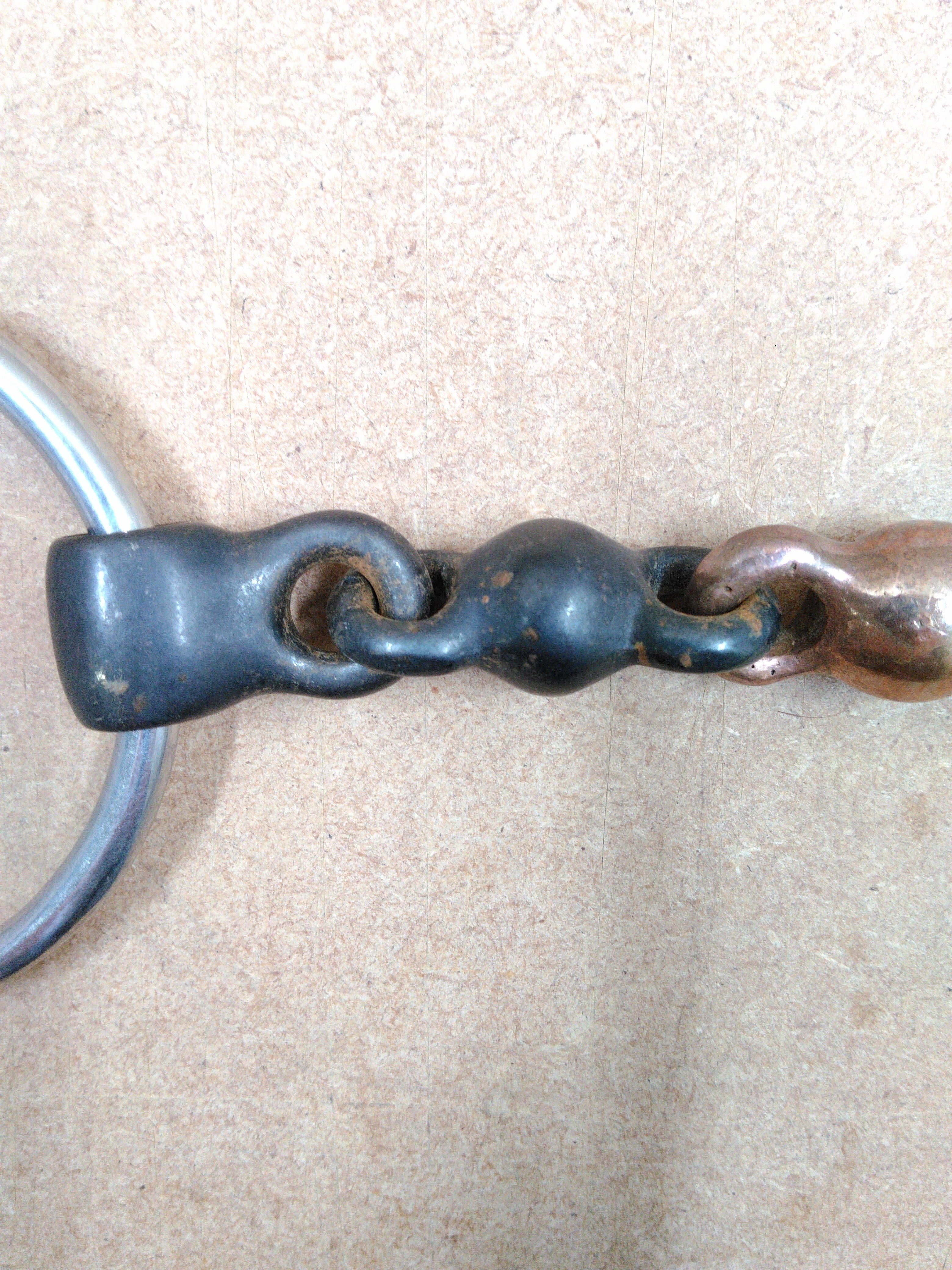 The Shires Sweet Iron Loose Ring Waterford bit is designed to provide a comfortable fit and encourage acceptance in the mouth. Its unique Waterford design helps to distribute pressure evenly, making it ideal for sensitive horses. Despite the absence of tags and minor rust, this bit remains fully functional and ready for use.