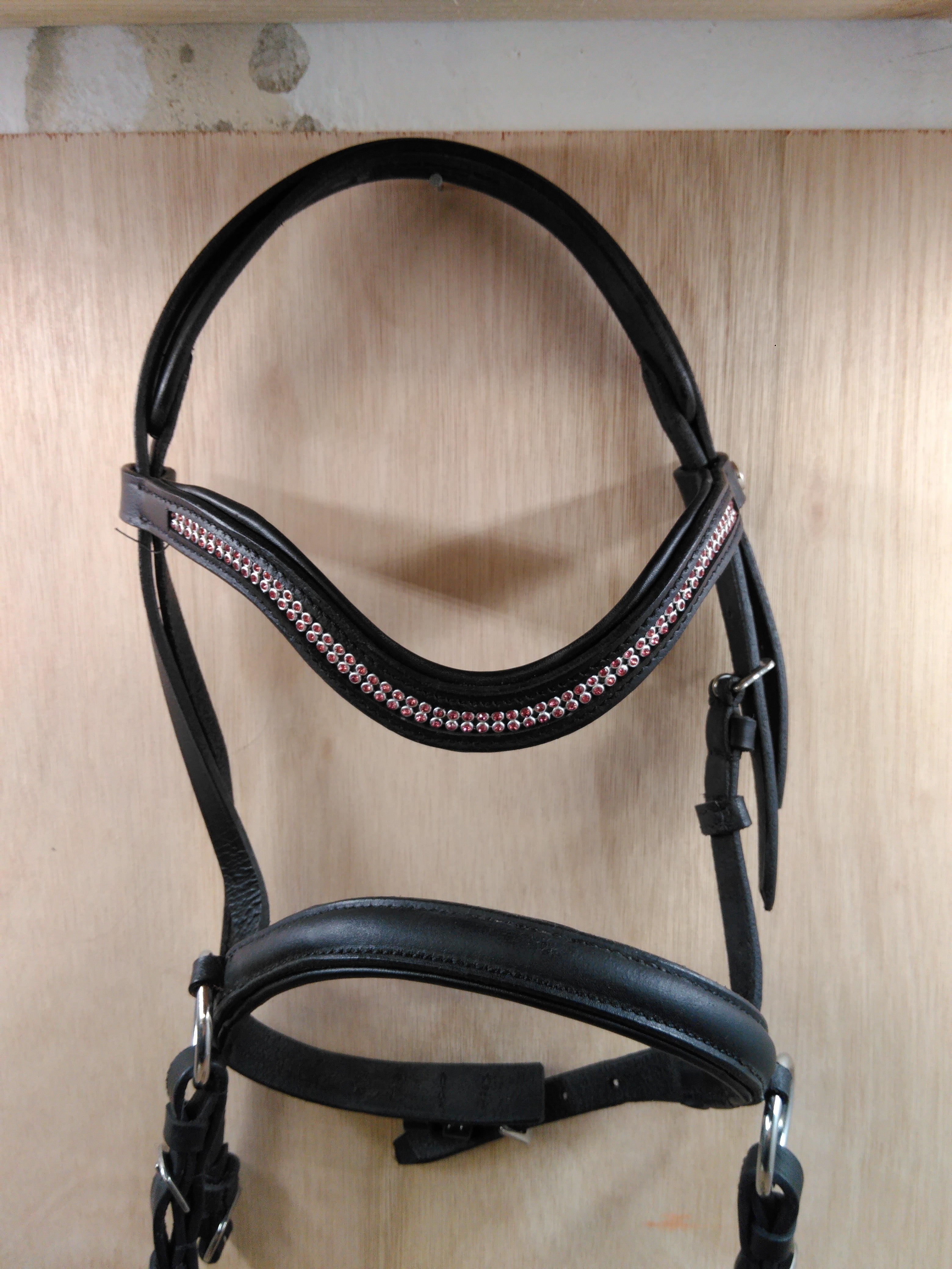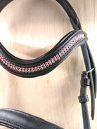 The HKM Bitless Bridle is designed for miniature wooden horses, featuring a playful black and pink colour scheme. This bridle is perfect for enhancing imaginative play and is functional despite signs of previous use. It may require cleaning to restore its best appearance.