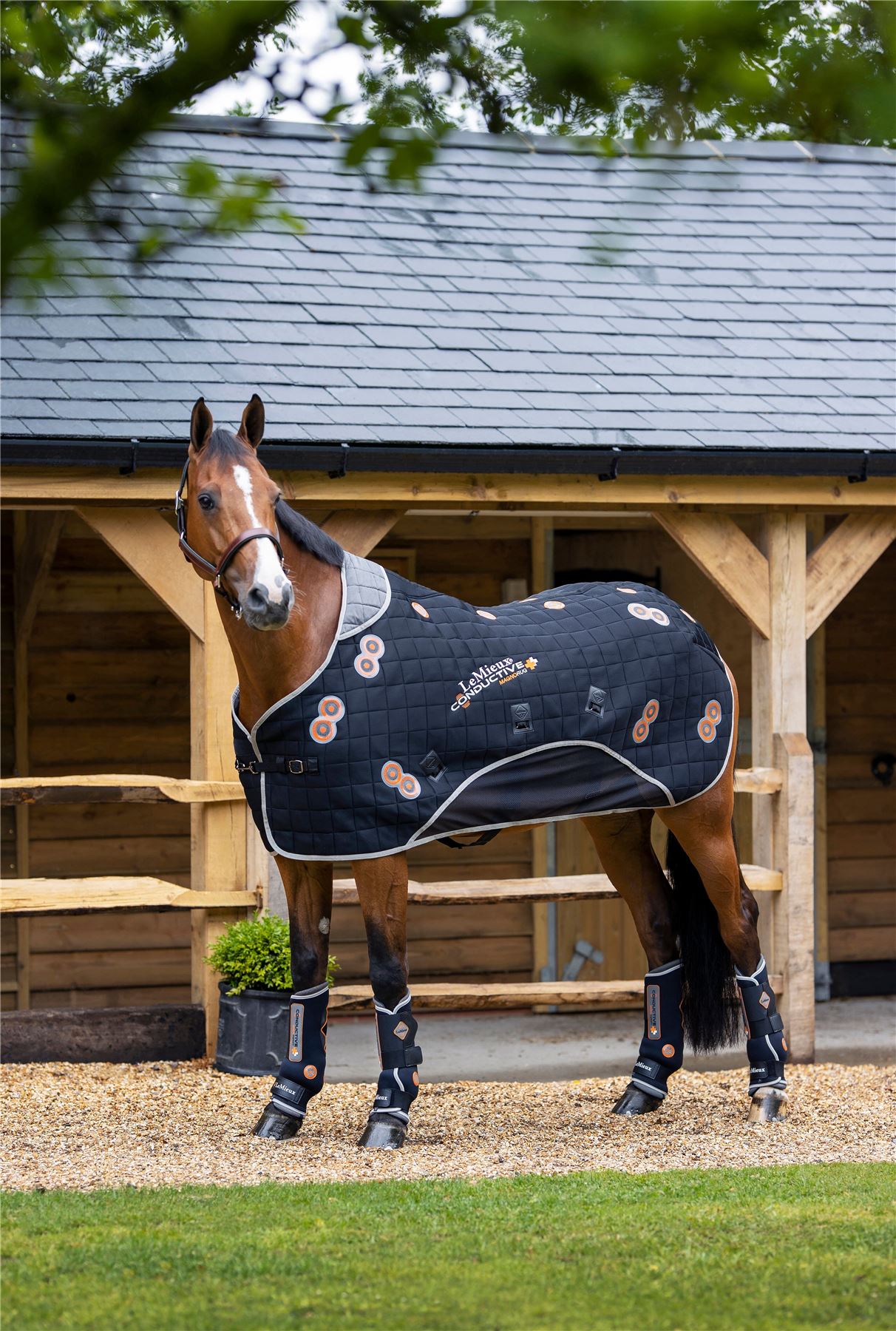 The LeMieux Conductive Magno Rug herald a new approach to magnetic therapy. Unique inner liners contain a woven layer of steel fibres directly under powerful 2600 Gauss twin magnets which are strategically placed over 5 key areas: Shoulder Elbow Hip Stifle Second thigh There are additional pairs of magnets aligned either side of the spine. The steel filaments conduct magnetic waves evenly around the lining, bringing the whole upper body within the magnetic field. Breathable 3D Mesh top side releases any heat build up from the magnets, while the lightweight mesh of the lower section encourages the air flow up. The 3-way adjustable belly straps ensure a close secure fit for maximum magnetic effect. Acknowledged benefits of using magnets include: Helps blood supply to tendons & joints pre-exercise. Aids recovery and detrimental effects of exercise and fatigue. Oxygen supply to tissue. Production of elastin & collagen essential for development of new cells. Helps with the effects of concussion from hard ground or extreme exercise.