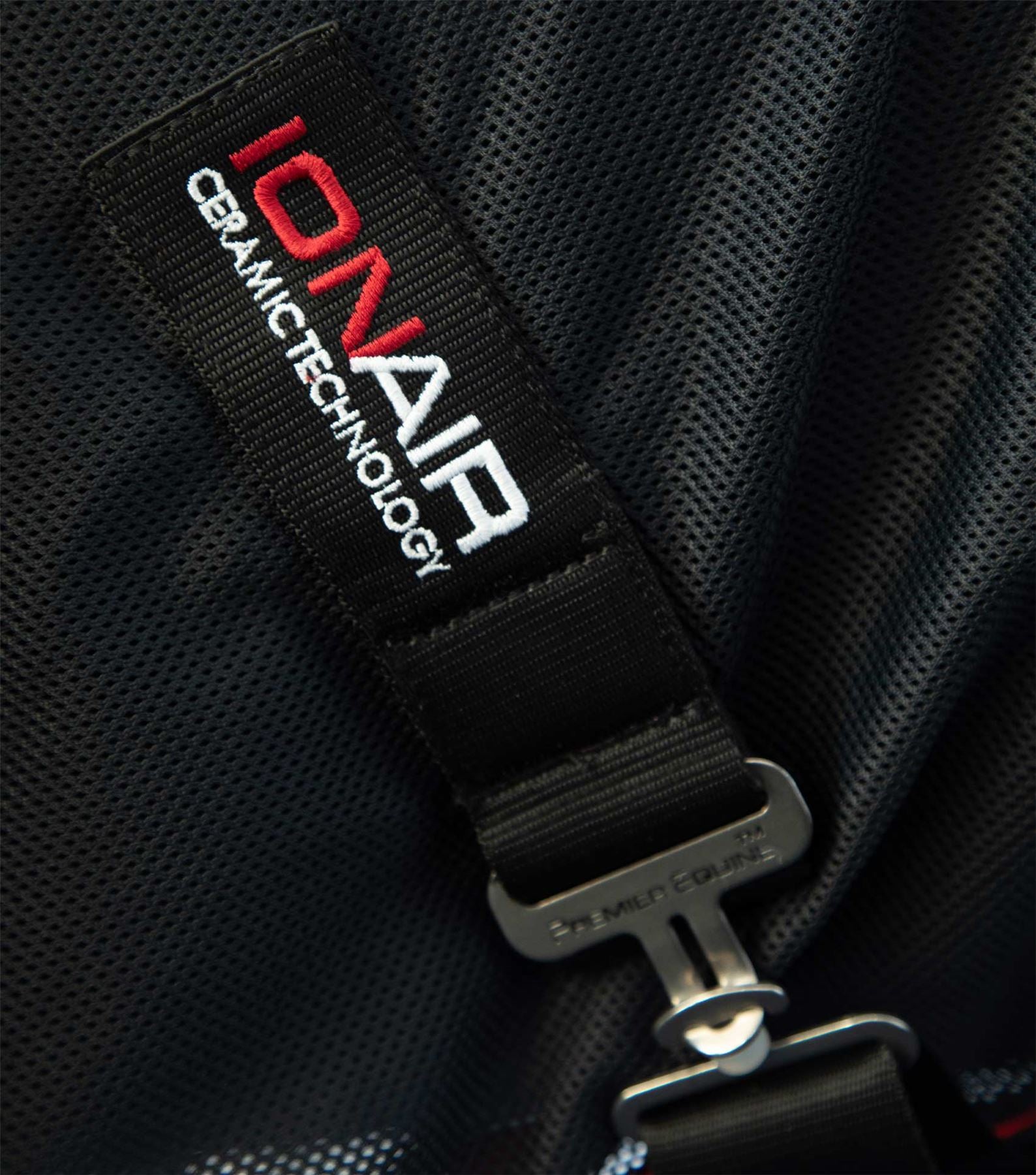 Ceramic minerals are embedded and infused within the fibres of the fabric, ensuring the ceramic benefits last for the lifetime of the rug and will not wash out. We recommend using the Ionair Ceramic Technology rug before exercise to help prepare the muscles for work, and after to help reduce lactic acid build up caused by exercise. The therapy delivery method means that the effectiveness of this product is significantly increased when used by horses who are in regular training. Why use ceramic technology rugs? The following benefits have been reported: Temperature regulation - Aids recovery of muscle fatigue - Re-energises muscles - Maintains circulation - Prevents chills - Removes toxins - Improved tissue oxygen supply - Can help to maintain the overall wellbeing of your horse. Warning - Do NOT use on the following: Open wounds During pregnancy (ladies) Mares in foal Near pacemakers Always remember if symptoms persist, call your vet. Your Ionair Ceramic Technology Rug has been carefully hand packaged in a complimentary, reusable zip-fastened storage bag to keep your tack room tidy when not in use and for ease of carrying.