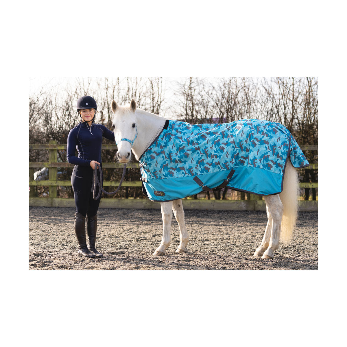 Your horse will stand to attention in the new DynaForce Rug! Covered in camouflage print, this pacific rug has a smart grey trim, drip strip and accessories. Featuring a 600 denier waterproof and ripstop outer material, this rug has a 50g fill, perfect for when a slight layer is required. Finished with a fleece lined wither area, adjustable twin buckle chest fastenings, adjustable leg straps and surcingles and tail flap for extra protection, security and comfort. Match with the rest of the collection.
