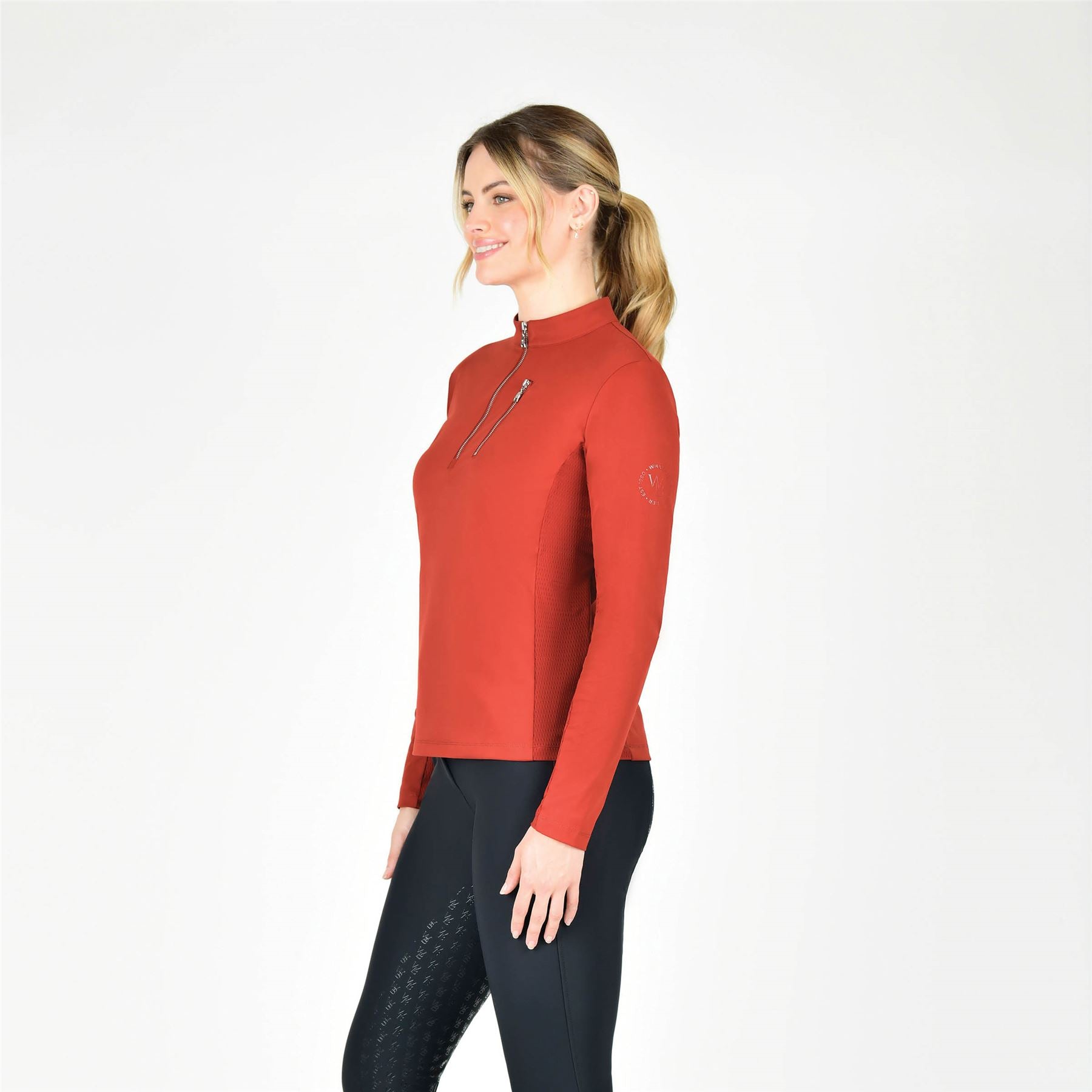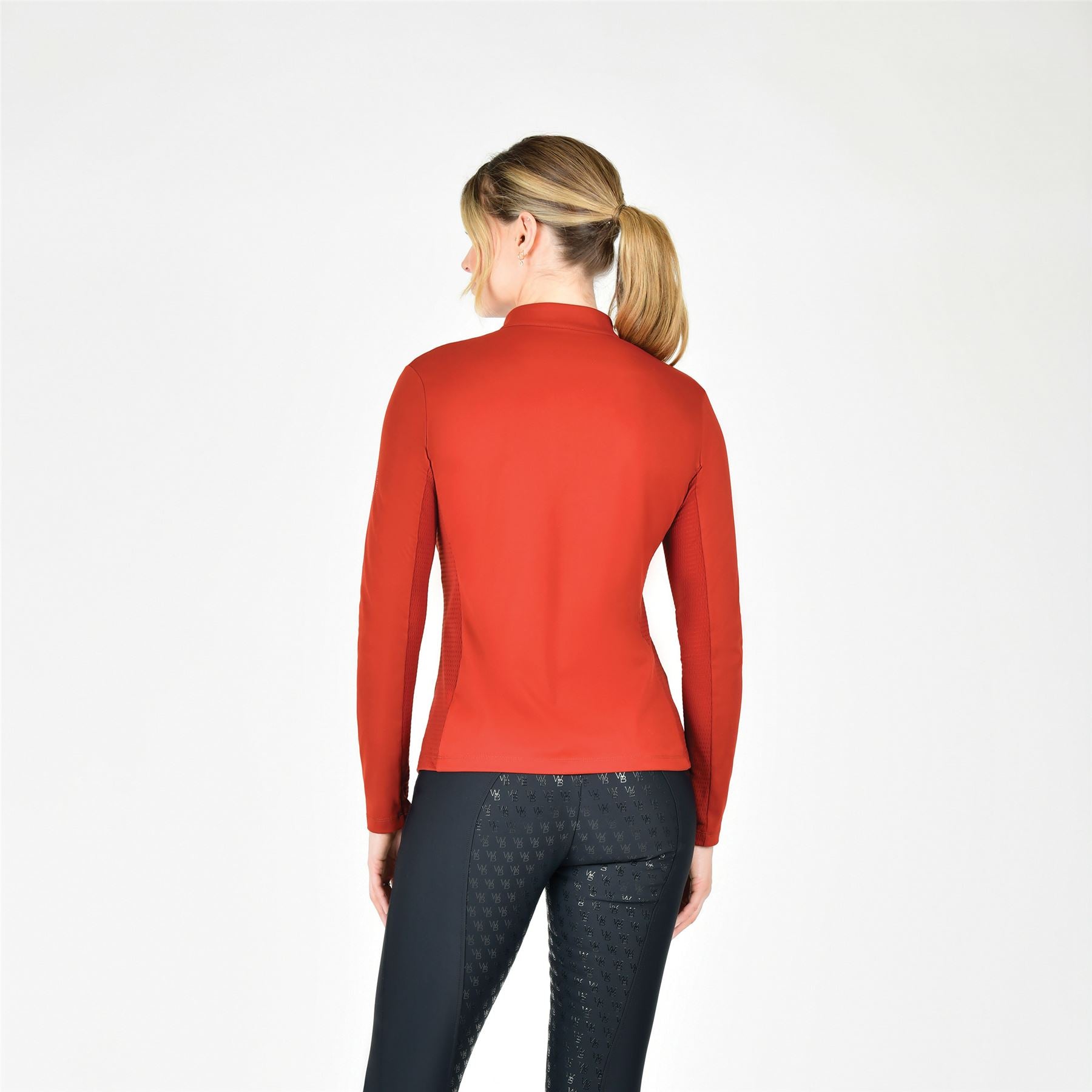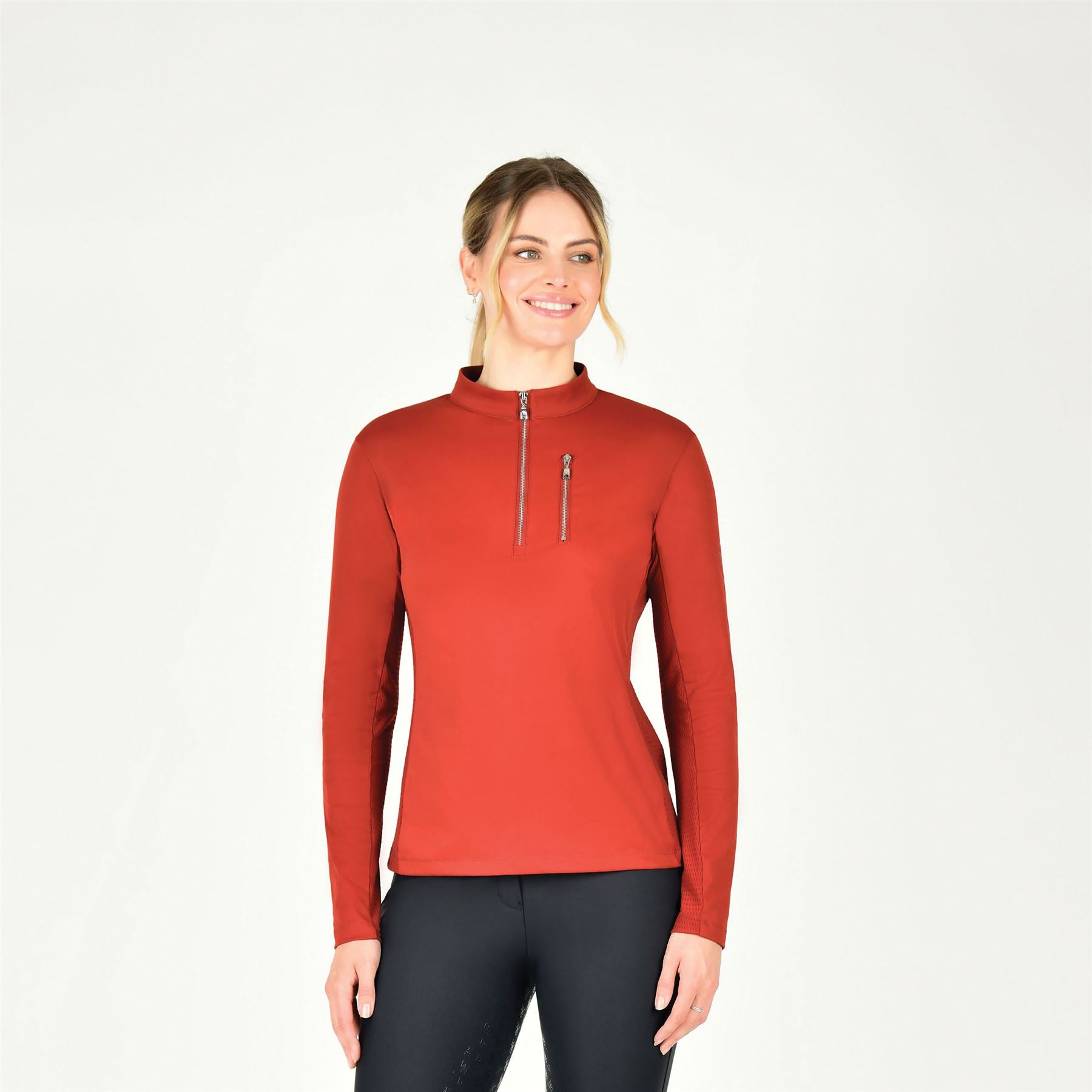 Meet the WeatherBeeta Reno Long Sleeve Riding Top that is made from an elevated nylon performance fabric designed to keep you comfortable all day! This long sleeve top is designed to draw moisture away from the body and features side and underarm panels with perforation for both breathability and detail. Comes with a quarter zip for easy on/off and left chest pocket with zip, each with branded zipper, as well as tone tone silicone branding on the sleeves. This top is in a slim fit design and available in Ladies XS - XL.