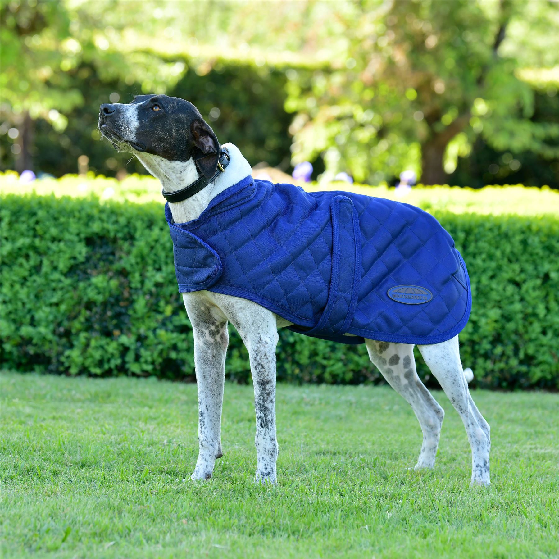 The WeatherBeeta ComFiTec Deluxe Diamond Quilt Dog Coat is a stylish, luxurious and premium dog coat designed to keep your dog warm on colder days. The diamond quilted outer offers class and durability with a luxuriosuly soft teddy fleece lining in a contrasting white colour and 150g of polyfill for warmth. This dog coat has easy to use touch tape front closure and belly closure, offering adjustable and secure fit. The fleece lined collar not only adds style and ensures this dog coat look great, but offers additional warmth around the neck when worn up. The contoured back seam ensures this coat sits comfortabley on your dog, as well as allowing your dog to wag his tail comfortably. This dog coat includes a harness hole on the spine, to allow for a harness to be used in conjunction with this coat and to sit comfortably under the dog coat.