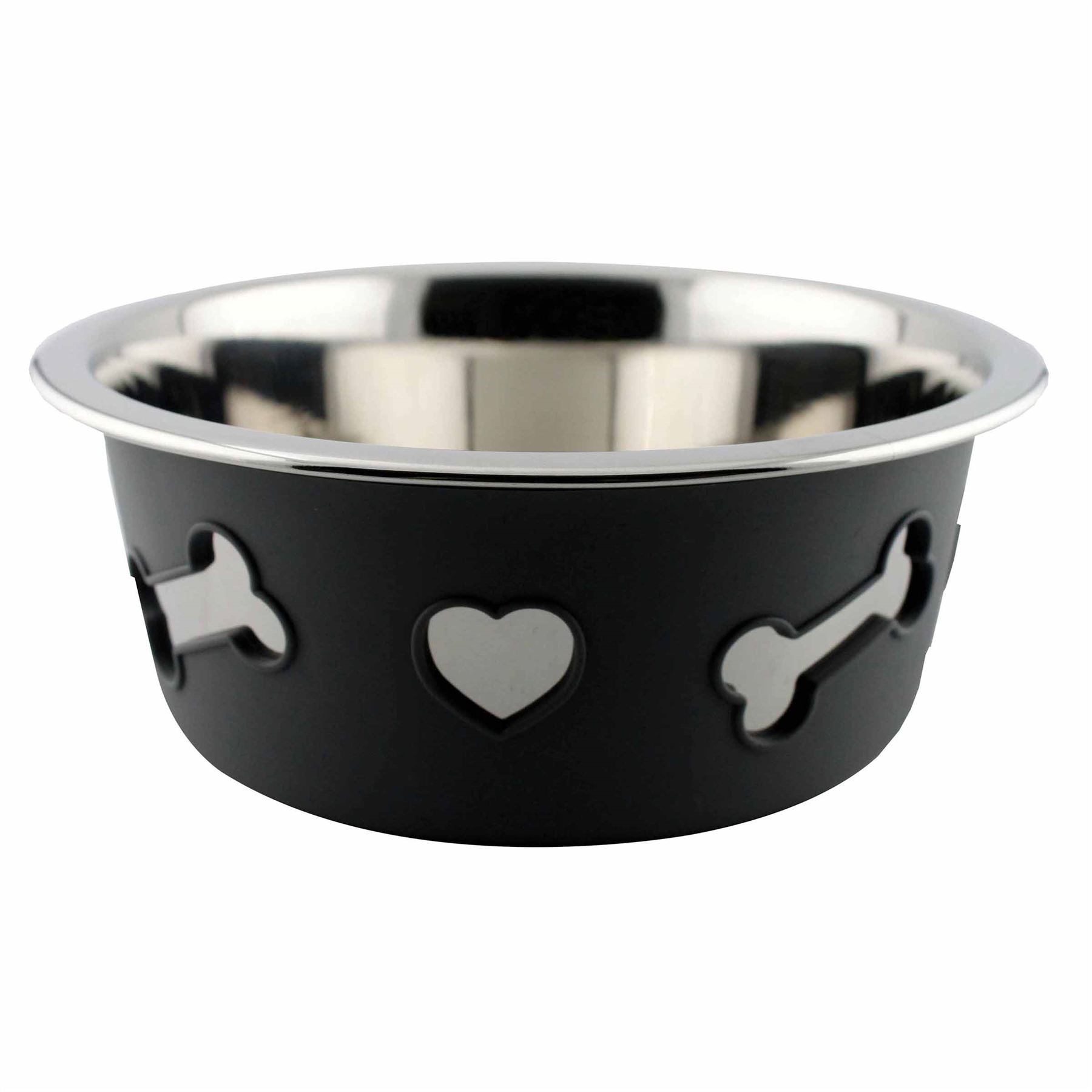This Non-Slip Stainless Steel Silicone Bone Dog Bowl from Weatherbeeta comes with a silicone outer which can be removed for cleaning and helps to reduce noise and skidding.