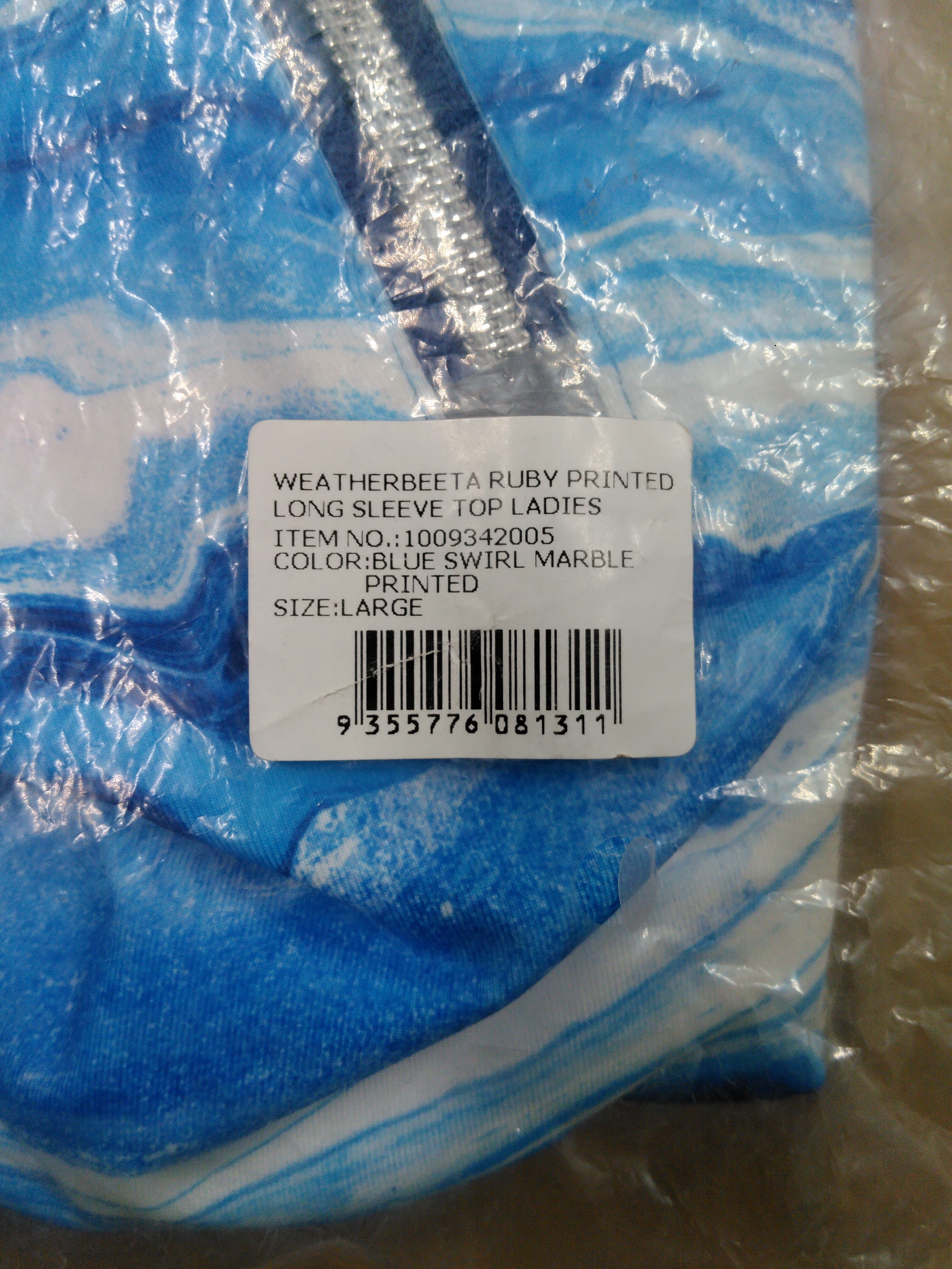 [Grade A - Clearance] Weatherbeeta Ruby Printed Long Sleeve Top Ladies Blue Swirl Marble Large – Large Blue Swirl Marble