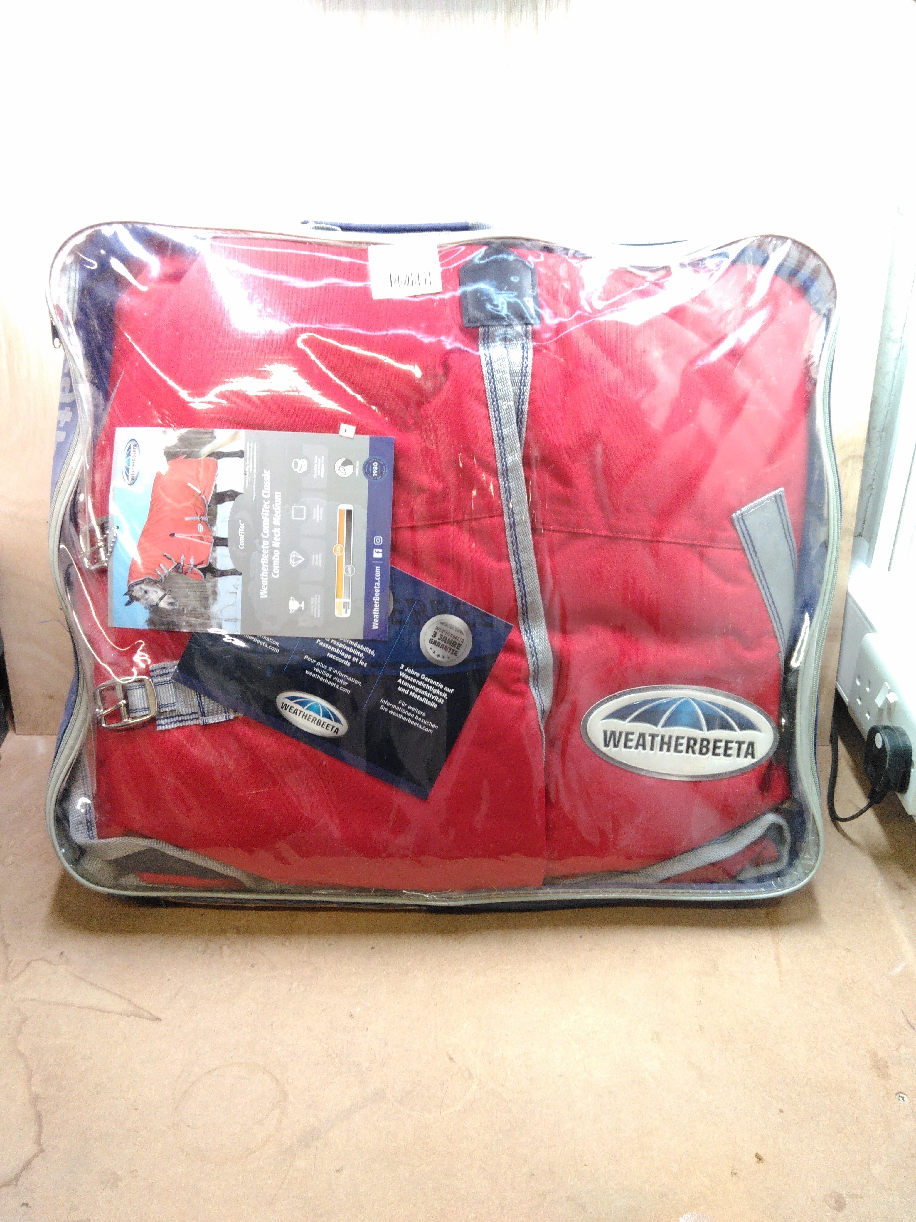 The Weatherbeeta Comfitec Classic Combo Neck Medium is designed to provide comfort and protection for your horse. This high-quality rug features a classic design with a combo neck for added coverage, ensuring your horse stays warm and dry. Ideal for transitional weather, it combines durability with a stylish look in a striking red, silver, and navy colour scheme.