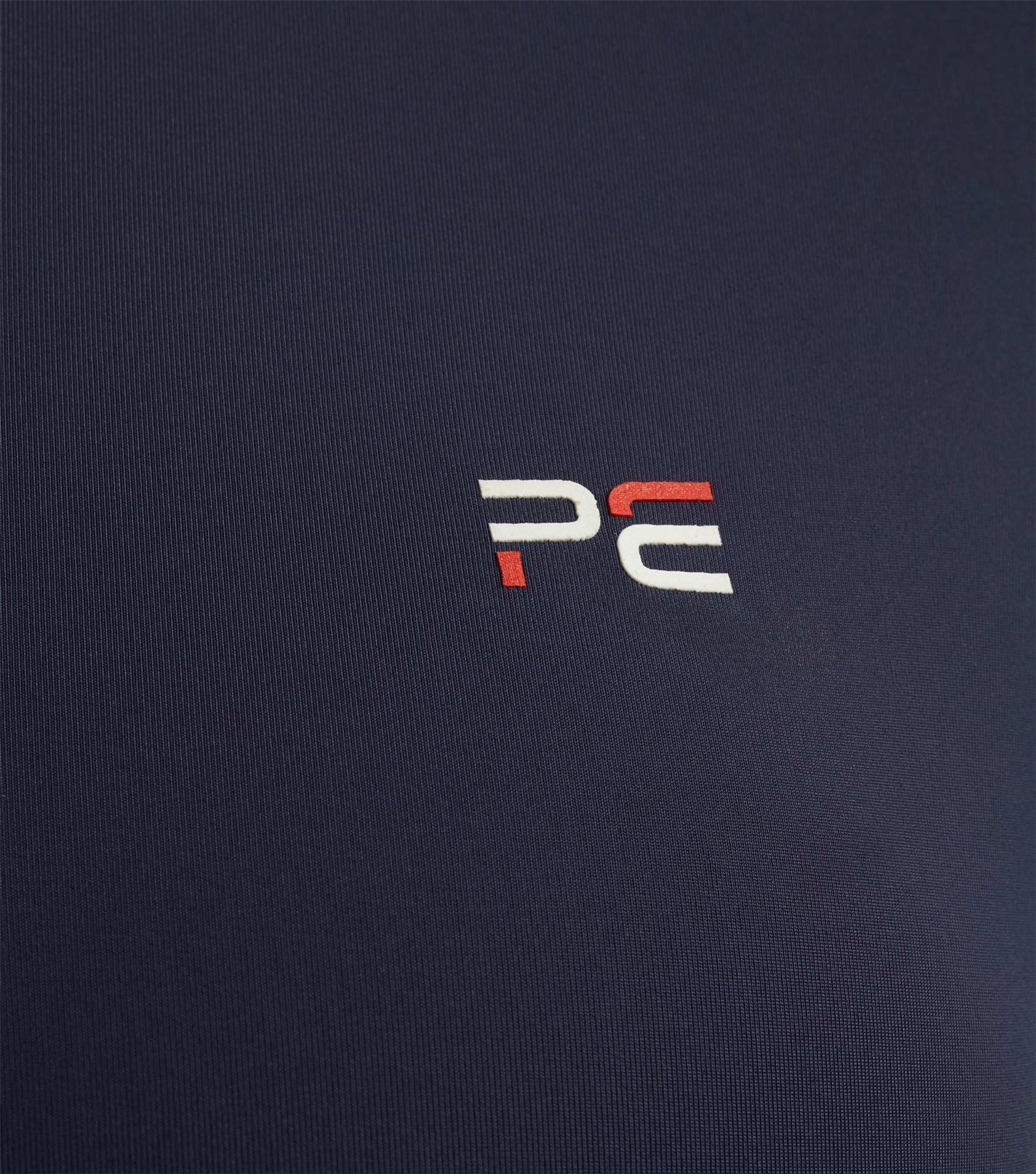 Lightweight Breathable 4-way stretch 1/4 zip closure 3 stripe brand colour trim on front and sleeve hem PE branding Decorative curved stand collar.