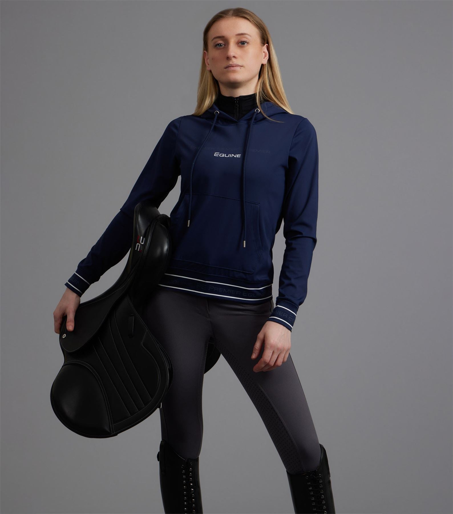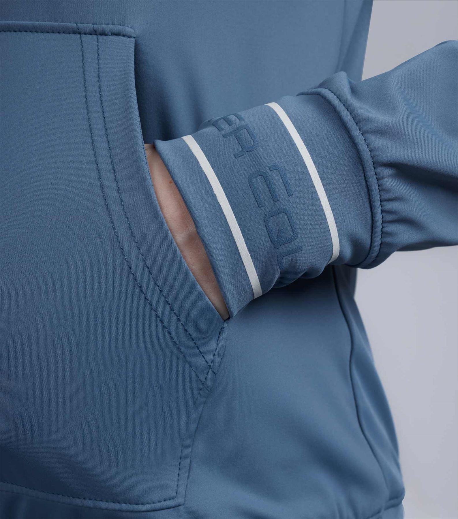 Introducing the Cadenza Technical Riding Hoodie: the perfect combination of performance and style for riders. This lightweight hoodie is designed to provide comfort and functionality, with its moisture-wicking and quick-drying fabric to keep you dry and comfortable. The Cadenza Technical Riding Hoodie features a relaxed fit for freedom of movement, and the soft, breathable material ensures all-day comfort. With its modern design and practical features, this hoodie is a must-have for any rider looking to elevate their performance and style. The Cadenza Technical Riding Hoodie comes in a stylish San Marino Blue colour, adding a touch of sophistication to your riding ensemble. Pair with the Delta riding breeches for everyday functionality, and comfort.