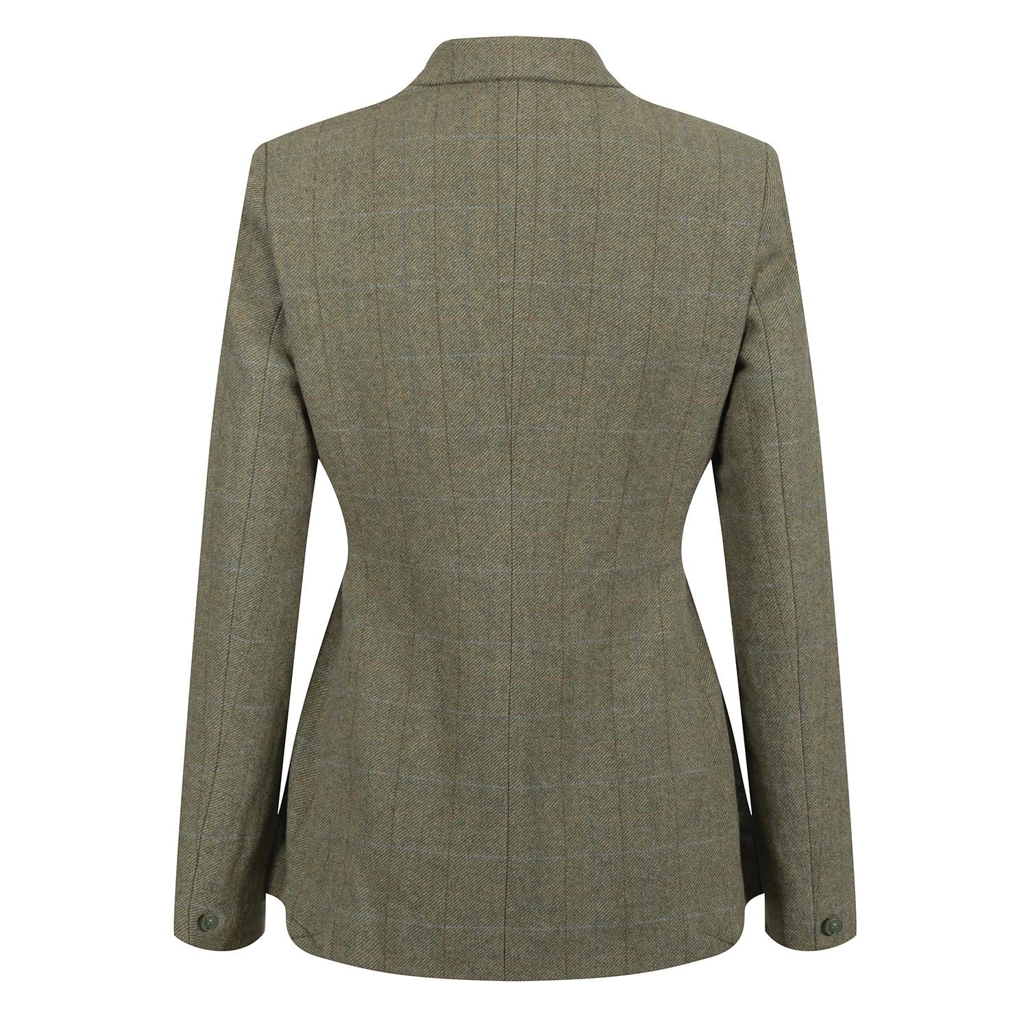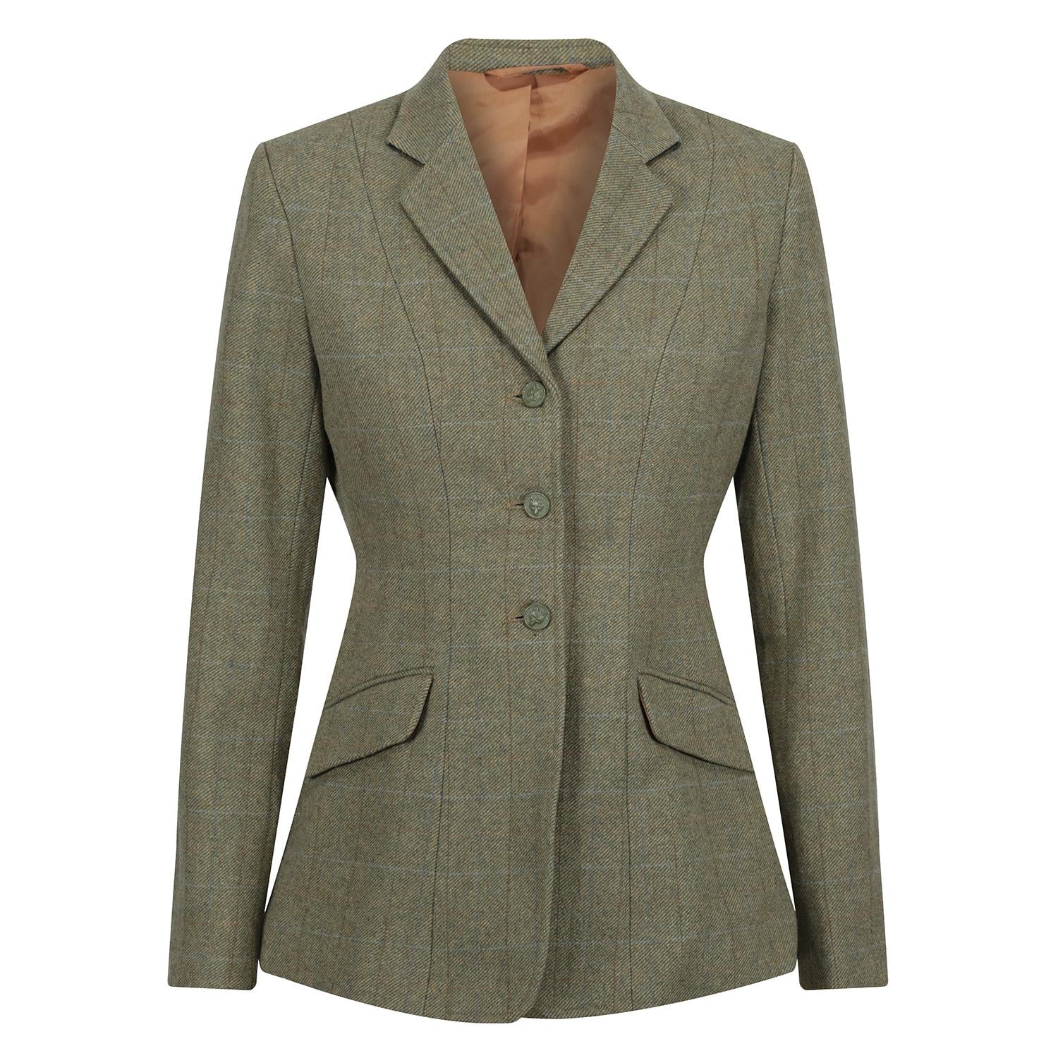 Exclusive Equetech� Green herringbone tweed with subtle Red, Orange and Blue overcheck.�Perfect for all equestrian activities including Showing, Cubbing and Riding Club activities. Features include Flap pockets with concealed zip pockets,��rich gold Equetech� jacquard lining, rich self fabric collar and pocket welts, foxhead buttons and double back vents. 60% Wool/ 40% Polyester. 400gsm.