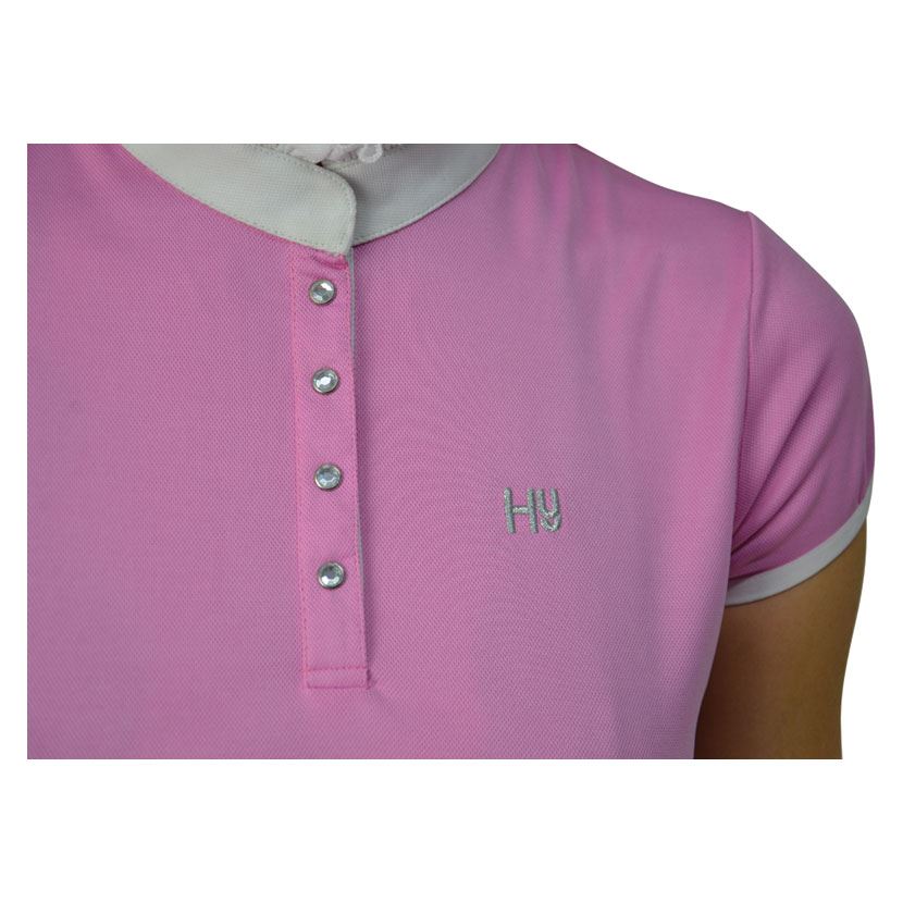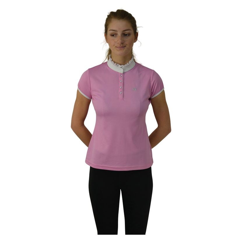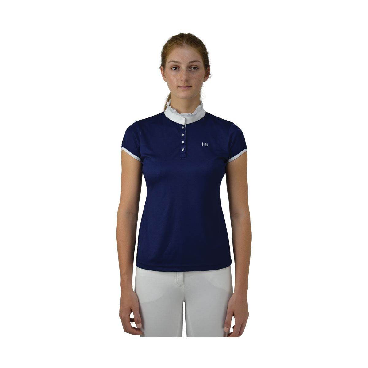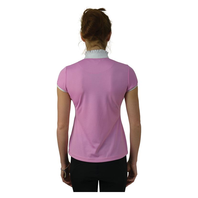 A stunning, contemporary yet feminine show shirt, which is just that little bit different! Made from advanced moisture-wicking material, this breathable shirt helps to regulate body temperature, keeping you cool and comfortable when competing. The shirt features a pretty frill collar, crystal press studs and soft white binding around the neckline and cuffs of the short sleeves.