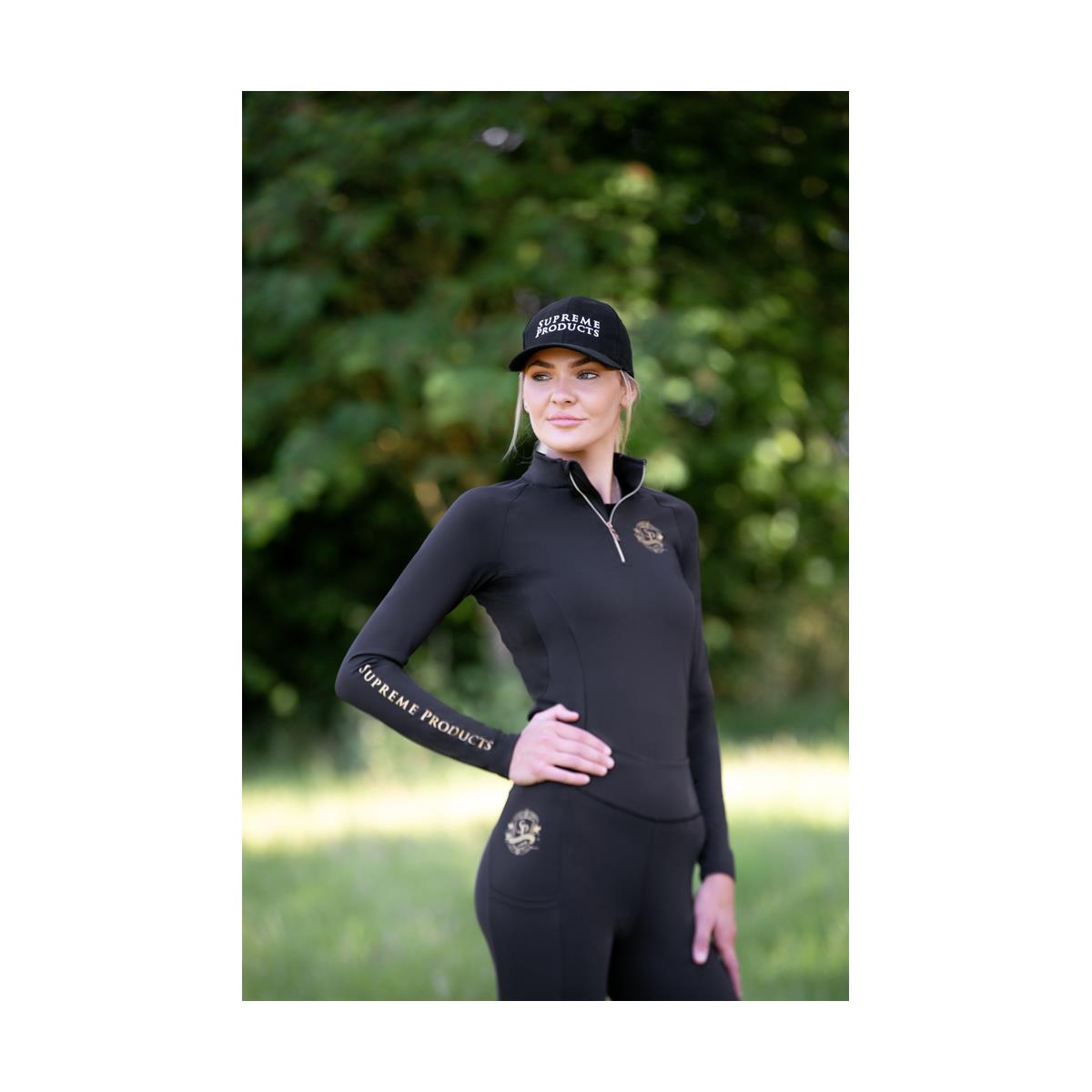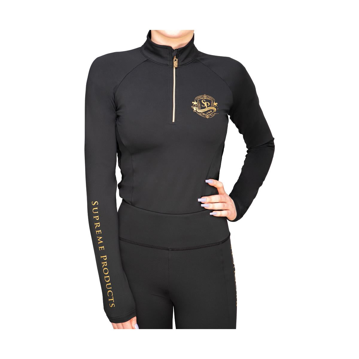 The stunning new base layer from Supreme Products is sure to be your new favourite. Beautifully crafted from technical, buttery soft stretch fabric it will fit like a second skin and give a flattering silhouette. Strategically placed mesh panelling increases airflow, aiding body temperature regulation, making it perfect for the active equestrian. Elegantly finished with exquisite gold branding for a classic and sophisticated look. Team with the matching riding leggings for a look we are loving.