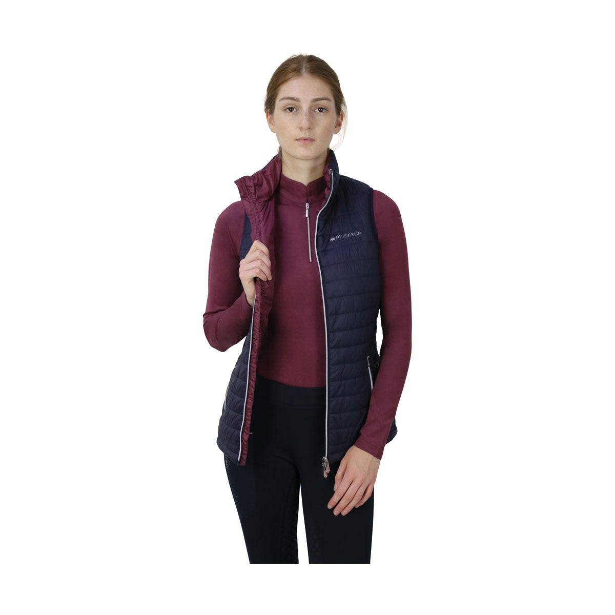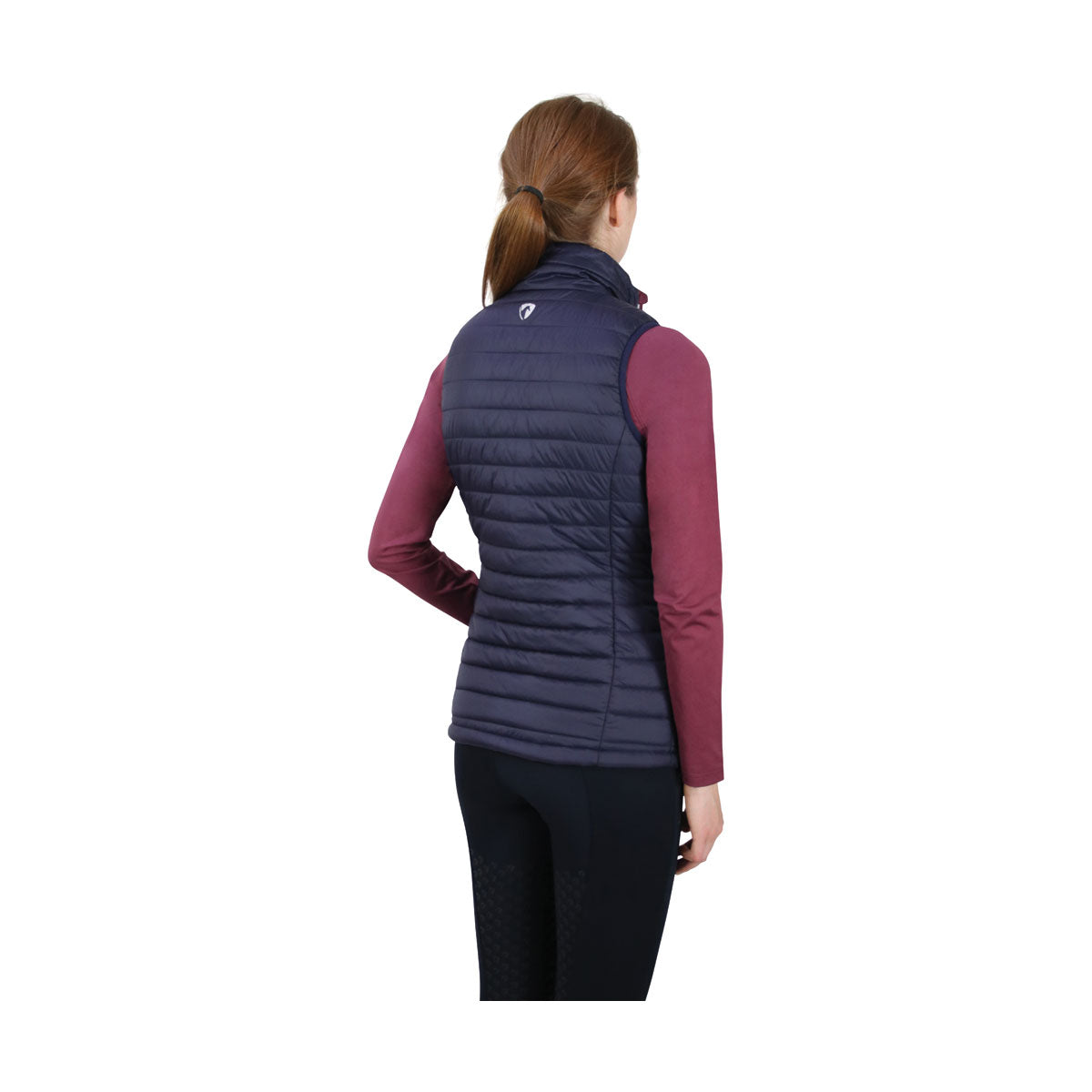 An ideal layer for cooler days and nights, or perfect to wear over your show jacket at competitions, the stunning Synergy Padded Gilet is certain to keep you warm and cosy. With practical two-way zip and zip pockets to keep your belongings safe. The navy gilet also features contrasting zips and fig detailing, with stand up collar to keep you extra snug and the chill at bay. The Hy Equestrian logo features on the chest.