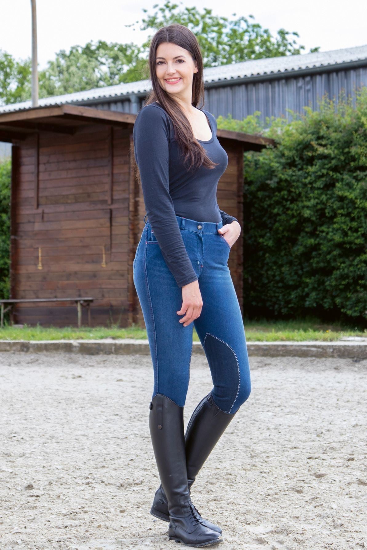 HKM Riding Breeches Summer Denim Alos Knee Patch