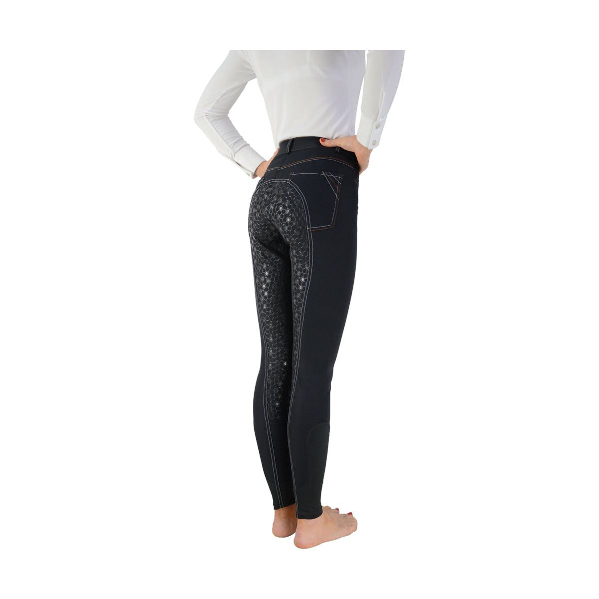 Merlewood offers the perfect combination of comfort, practicality and style all in one breech. 4-way stretch material ensures a comfortable fit allowing unrestricted movement whilst the full seat in the signature Hy honeycomb silicone print ensures security in the saddle. Cut to a mid-rise waist with no bulk stretch ankle cuffs they also feature four practical pockets � two front and two on the rear. Contrast stitching to the waist, zip and pockets adds the finishing touches.
