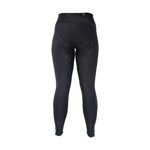 The HySPORT Supernova Ladies Riding Skins are An ideal choice for the active rider, allowing ultimate flexibility whether you're running, riding, or just on the yard! Sitting close to your skin for extra breathability and comfort. Featuring a wide stretch waistband, this versatile tight is sure to impress. Delicate silicon full seat provides security in the saddle giving you peace of mind to perform at your best. Midnight blue panels elongate the leg for an athletic feel. With reflective HySPORT branding to the left of the leg and zip pocket at the rear for your phone, these easy wear, quick drying skins are the ultimate choice for those serious about sport.