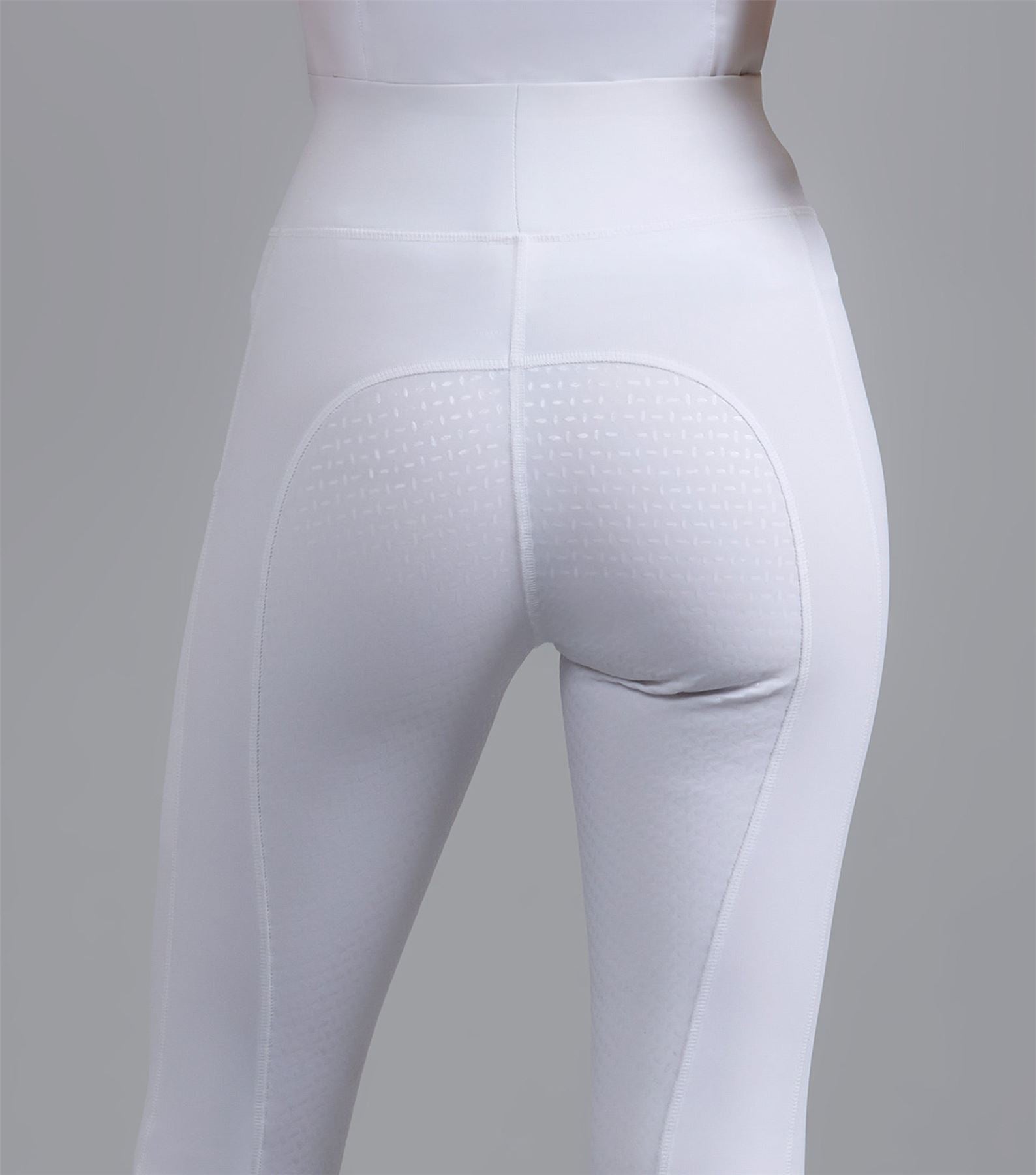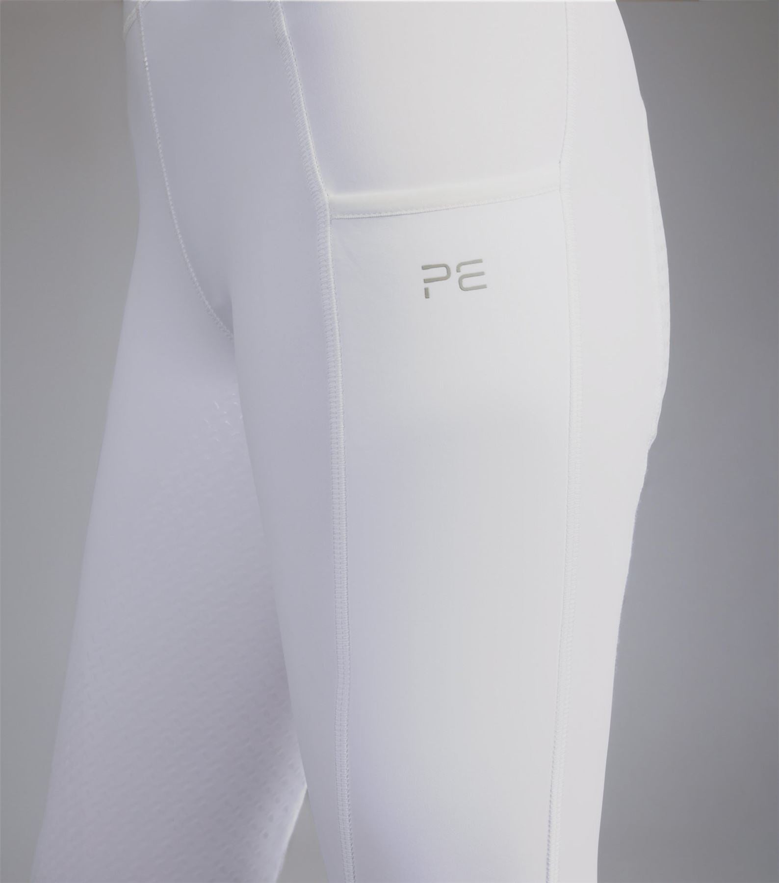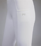 Pull-on riding tights that contour to your shape Technical four-way stretch fabric Breathable Deep waistband Deep front pocket Full seat of mid weight gel 'PE' branding