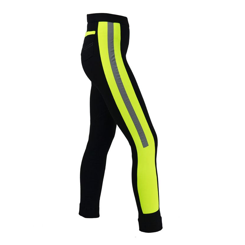 Look smart, feel comfortable and stay safe with the HyVIZ Reflector Ladies Jodhpurs. These flattering jodhpurs have been designed with a fluorescent panel and reflective silver strip down the leg to optimise visibility in low-light conditions. Made with 95% cotton and 5% Spandex, these pull-on style jodhpurs are both stretchy and comfortable and come with an elasticated waistband. Available in either yellow and black or pink and black, they are finished with two useful back pockets topstitched in silver, a fluorescent strip trim and a Hy logo embroidered in silver on the waistband. Smart, comfortable and safe!