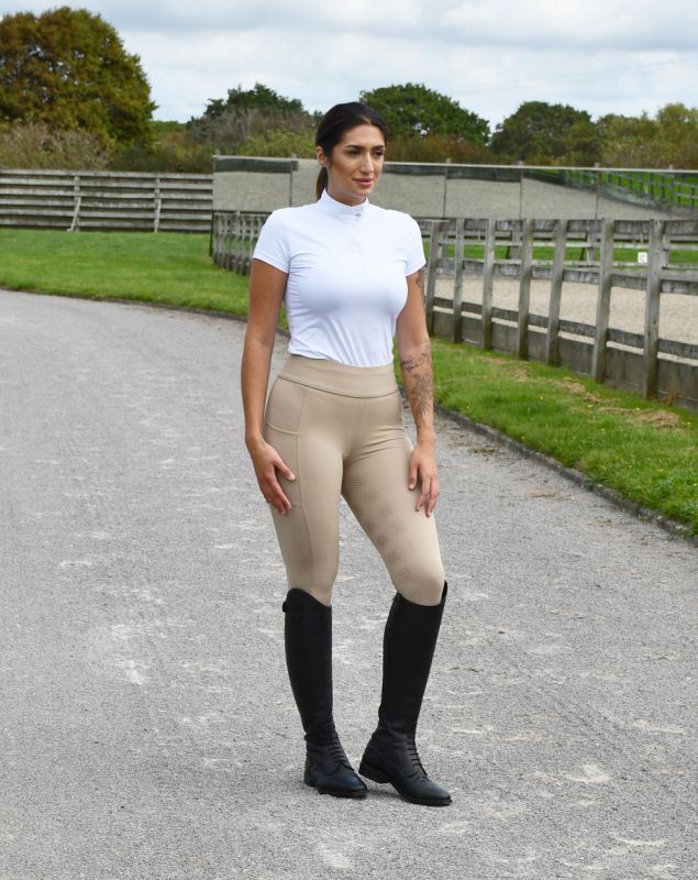 Introducing the brand new Vogue Collection Fully lined Riding Tights. Made from a Polyester/Spandex close fitting stretch material completely fleece backed to offer a more substantial fabric. The soft extra wide elasticated waistband is very comfortable to wear and easy to pull on.With a full silicone seat for maximum grip and security in the saddle. These tights also have two side pockets suitable for a phone etc. The Vogue collection features the new silicone Rhinegold logo on the back of the waistband. Super Comfortable Silicone Grip Side phone pockets for easy access