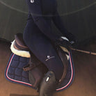 Ideal for competitions or everyday riding these stretchy riding tights have a phone pocket on the leg and two zipped side pockets for valuables. A full silicone printed monogram seat, wide supportive waistband and branded printing in champagne gold add to the elegance of these tights. Features a wide supportive waistband.