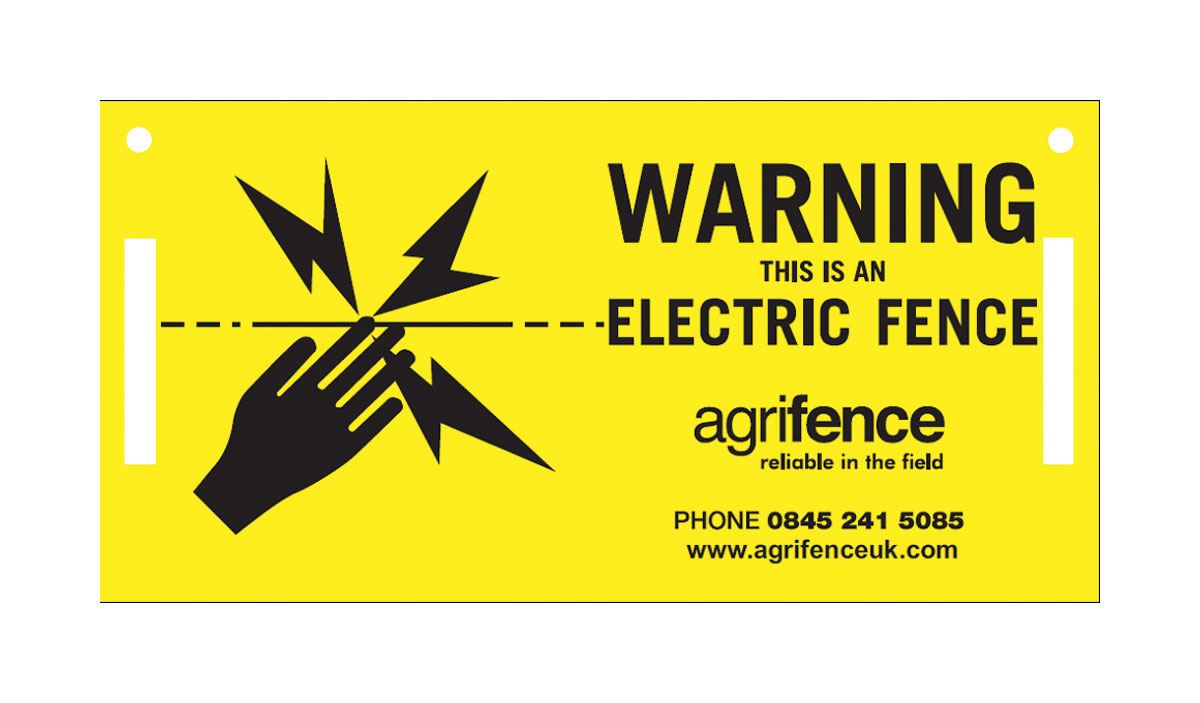 Legal requirement every 50m on an electric fence where the public have a right of way.