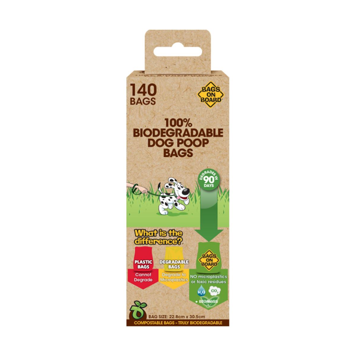 Highest Certified Biodegradable Compostable Dog Poop Bag By authorities in Europe (EN13432), the US (ASTM D6400) and Australia (AS4736-2006). Breaks down into Water, Carbon Dioxide & Biomass. Bags completely dissolve in nature helping keep our landfills, seas and the planet plastic free.