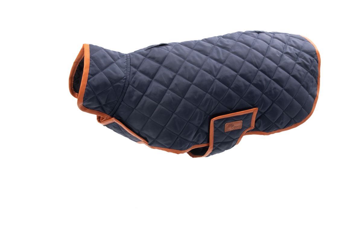 This stunning dog coat is a made from a 210 denier outer and features a diamond quilted pattern with 100g fill to keep your dog toasty. Additional warmth is provided with the padded lining and the coat is secured safely in place with adjustable back leg closers and touch tape fastenings. With additional collar to offer your dog even more protection, this dog coat also features lead hole for practicality and leather binding for a stylish look. Finished with Benji & Flo leather look logo and tonal stitching.