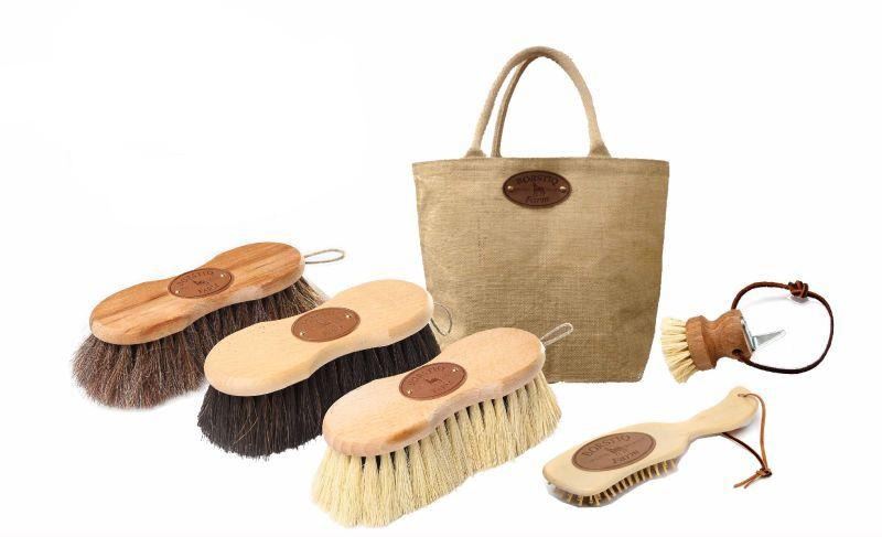 Comprising of Natural bristled brushes * Shaped Mex Fibre Brush * Shaped Arenga * Shaped Finishing Brush * Borstiq Stubby Hoof Pick/Brush * Ergo Hair/Massage Brush * Natural Hemp Tote Bag The Borstiq 'shaped' type of brushes have a higher density of bristles and are slightly larger than the 'banana' type brushes. As with all Borstiq brushes, they are of exceptional quality and finished beautifully. If you want to add quality to your grooming kit then look no further! They also make fab presents if you are looking for something a little different for the horse owner that has everything! Please note, the contents of the kit may vary