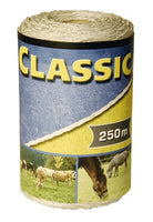 This product is a classic line offers good conductivity and very high durability due to reinforced stainless steel wires. Excellent for medium fence lines. Strong mono-filaments have increased breaking strength. Length: 250 metres. Resistance: 3.87 ohms. Conductors: 6 x 0.2mm stainless steel. Breaking strength: 80kg.