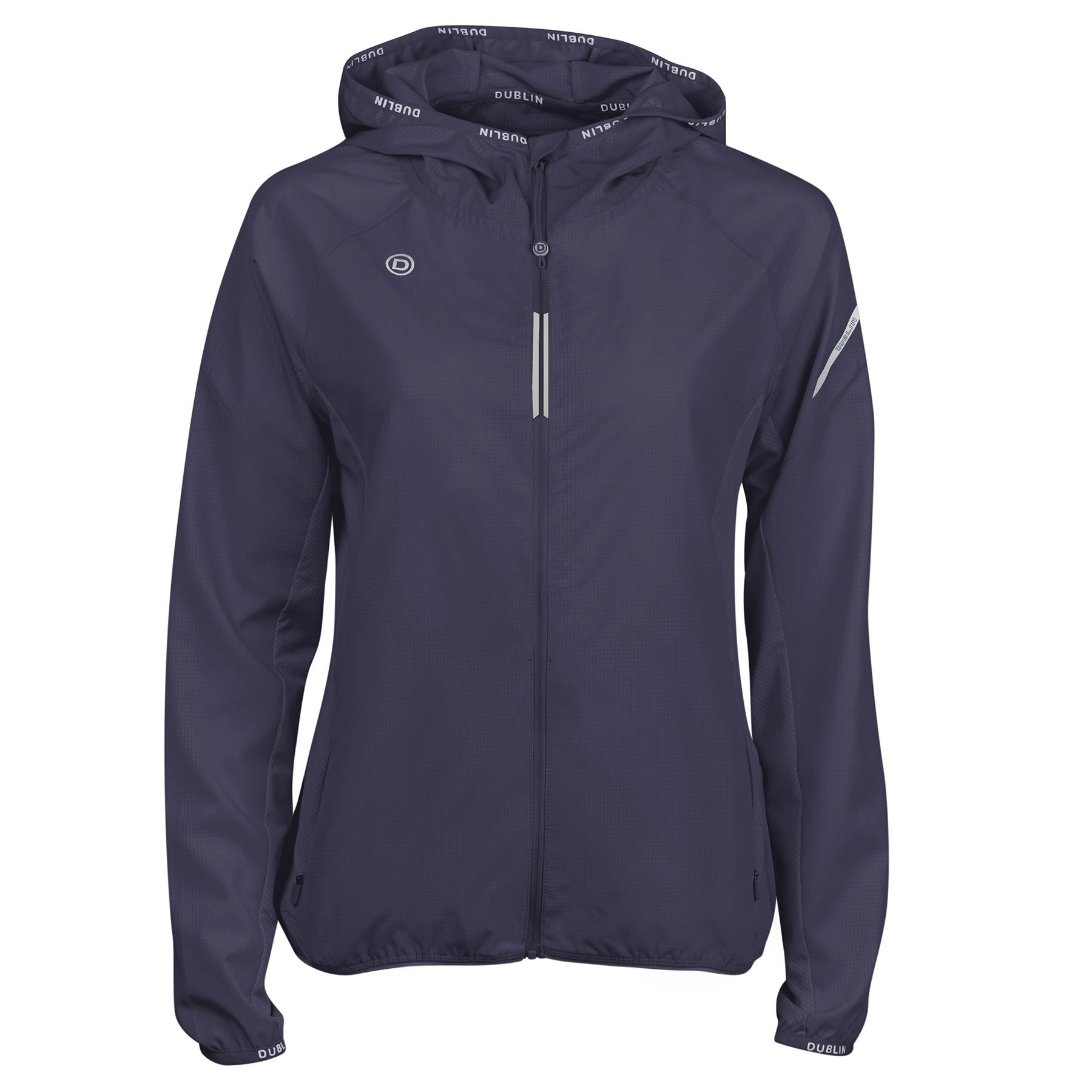 The Dublin Layla Jacket is a great addition offering lightweight shower proof protection, featuring airflow mesh panels for breathability. Full zip stand collar with hood with elastic binding detailing on hood, hem and cuffs for a comfortable fit. Zip hand pockets perfect for your phone!