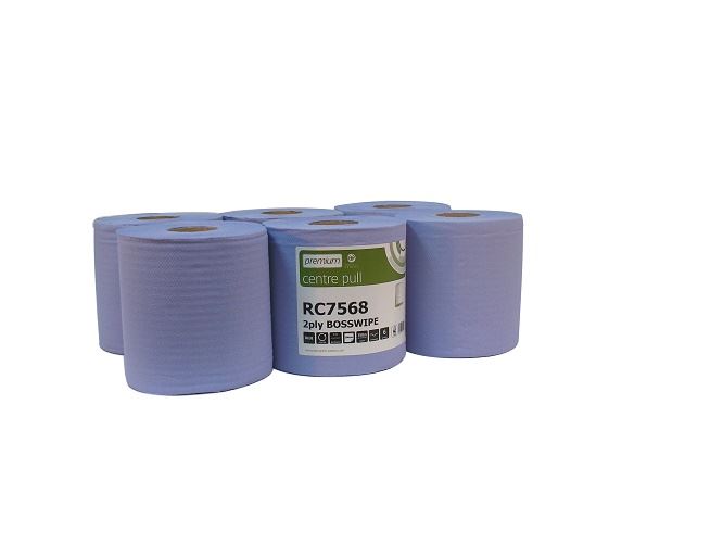 This product is a 2-ply blue, 20cm wide x 150m long, centre-feed. 375 sheets per roll.