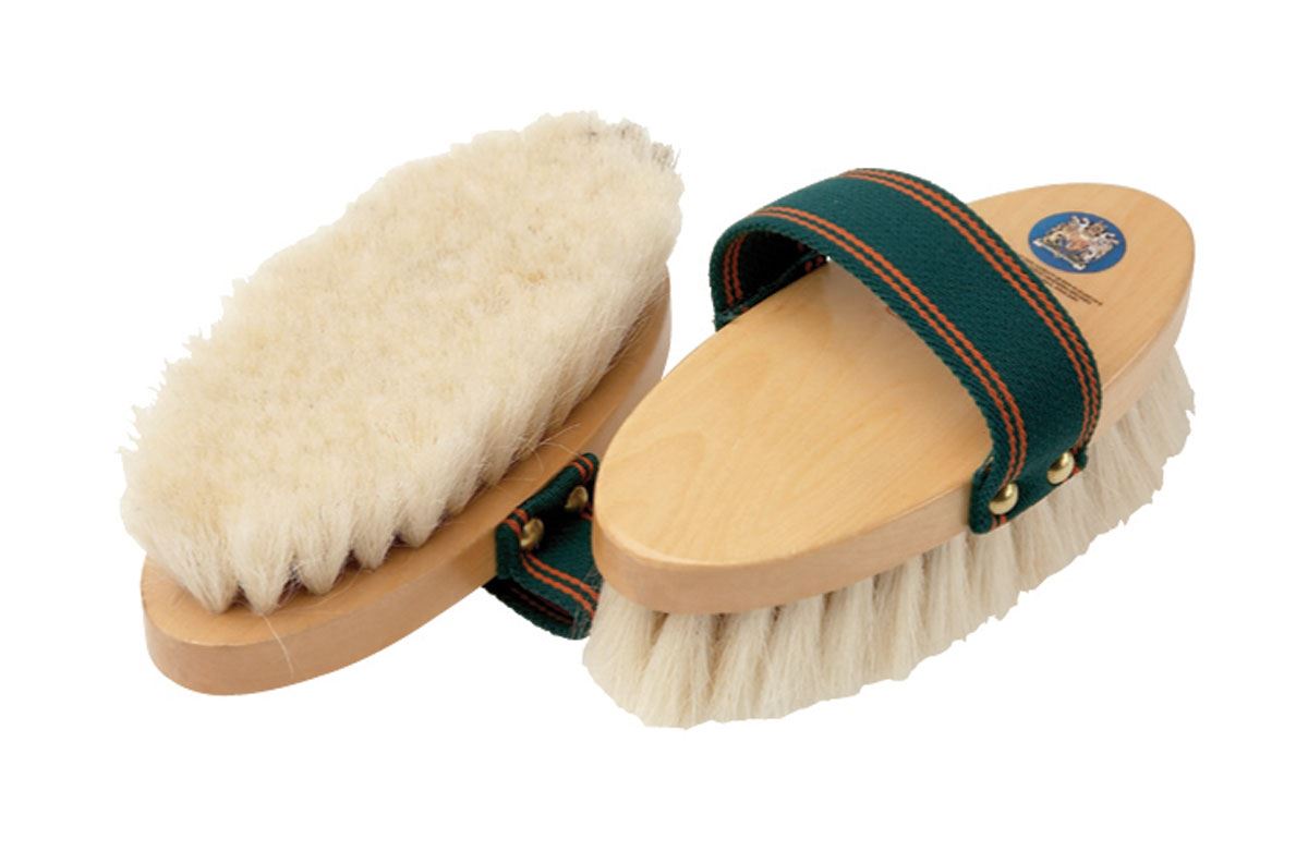 A traditional range of wooden backed body brushes each using renewable, seasoned, selected hardwoods which are ergonomically shaped to comfortably fit the hand. Leather strap. Size: 190 x 90mm.