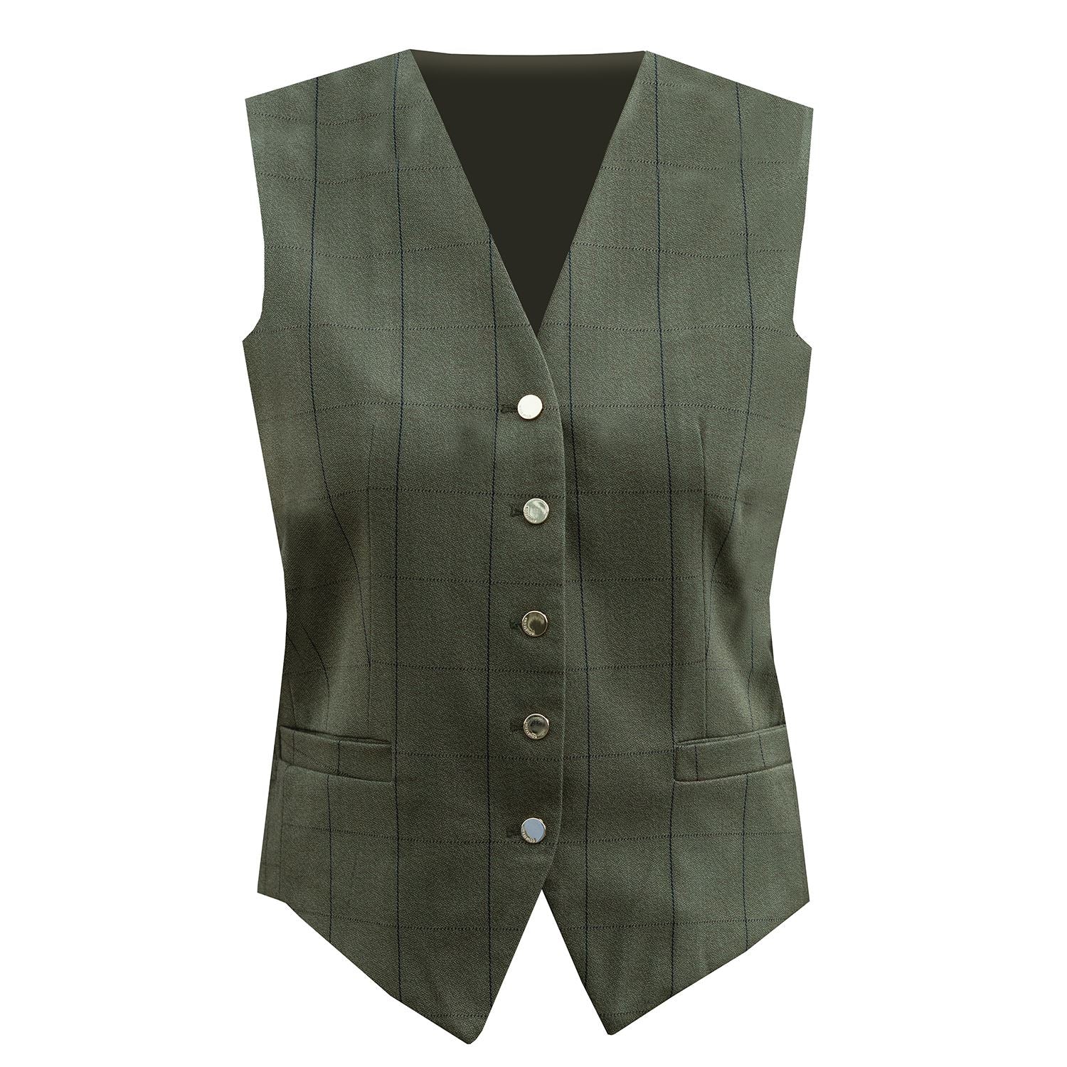 Introducing our exquisite classic tweed waistcoat, crafted from our exclusive Bellingham cloth. This timeless piece exudes elegance with its subtle Navy over-checks, adding a touch of sophistication to any showing look. Designed with impeccable attention to detail, this waistcoat features Equetech gold buttons adorning the front, enhancing its traditional appeal and Navy satin lining on the back adds an exquisite finishing touch, ensuring both style and comfort. Manufactured with recycled polyester fibres and raylon, you're not just looking stylish, but also choosing the sustainable option. Whether you're attending a show or creating an elegant casual look, this waistcoat is a great versatile addition to your wardrobe. Available in a wide range of sizes, including up to a UK 24 as standard, we believe that every equestrian should be able to create winning style. Machine Washable. 64% Polyester / 33% Rayon / 3% Spandex.
