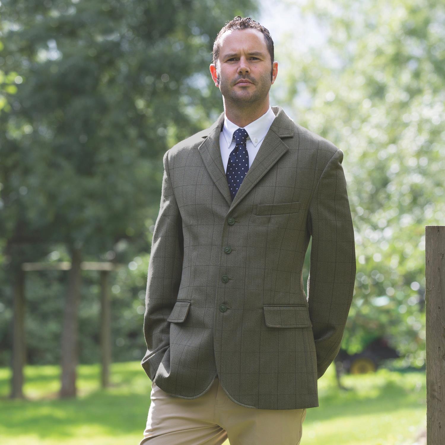 Exclusive Equetech� olive tweed jacket with subtle green and brown over checks. Features flap pockets with concealed zips, chest pocket, foxhead buttons, rich gold Equetech� jacquard lining, double back vents and supplied with jacket bag and spare buttons.