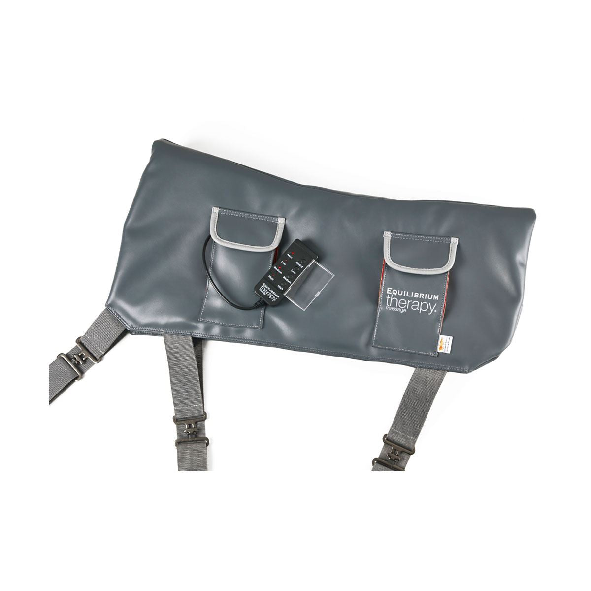 A lightweight and portable massage pad which works by stimulating the muscles on the horse�s back by pulsing, vibration and stroking actions. Clinically proven to improve back flexibility and promote relaxation. Shaped to follow the contours of the horse�s back, provides coverage from withers to quarters. Battery operated 30 minute sessions, with three different, easily adjustable programs that allow you to choose the intensity of the massage. Perfect before exercise as part of warm up and after exercise to help with toxin removal, it can be used to help alleviate back problems, or anytime as a rewarding treatment. Fits a wide range of horses and ponies. Easy to fit, clean and store with a modern and practical sports holdall. Comes with a new high performance battery and universal charger, as well as a 2 year product warranty. THIS ITEM IS FOR THERAPY STOCKISTS ONLY. For more information on becoming a therapy stockist please contact Equilibrium).