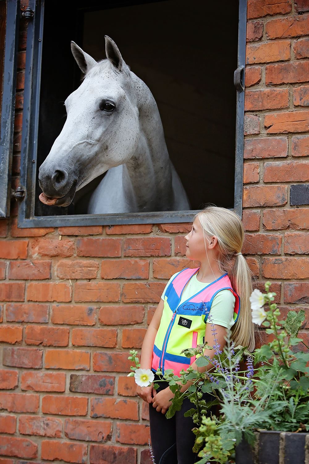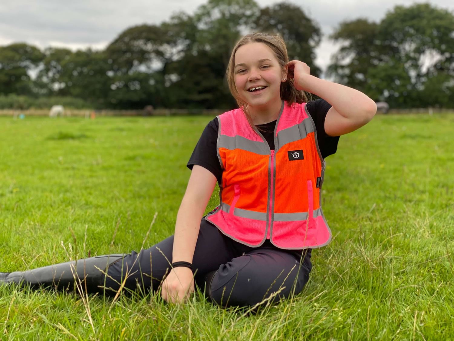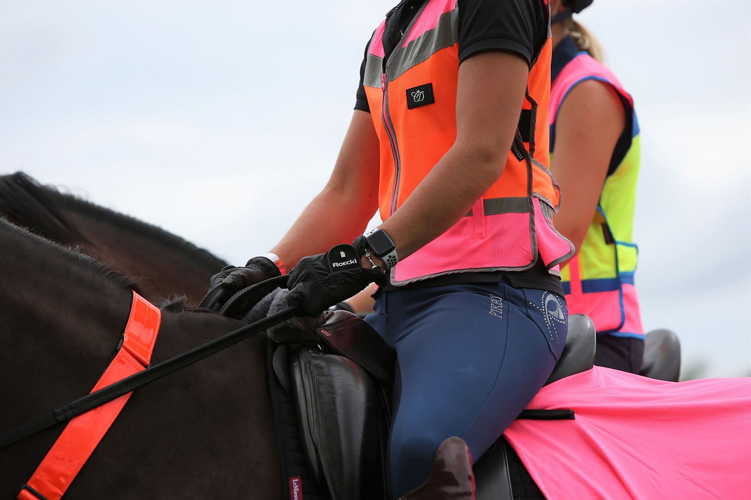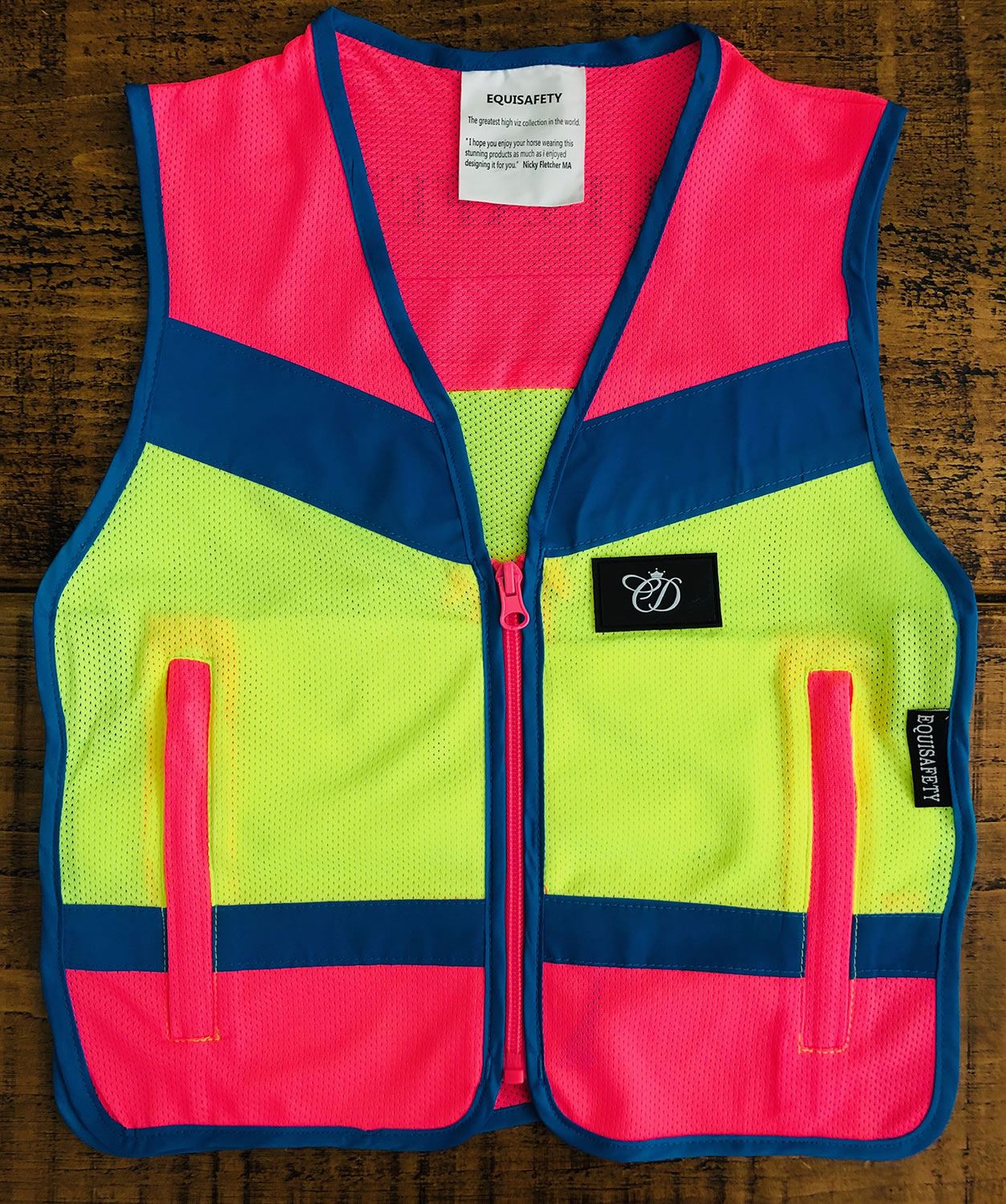 Multi-coloured, technical, lightweight, highly breathable mesh hi-vis waistcoat. Fully adjustable at the back with two large zipped pockets. Featuring a Charlotte Dujardin rubber logo badge. A very comfortable waistcoat to wear and the mesh fabric is perfect for reflecting sunlight and keeping the rider cooler in the Summer.