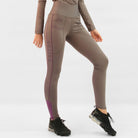 Our high-waist Noex tights are designed to flatter your figure and hold you in, giving an enhanced posture whilst in the saddle. These are a great addition to the wardrobe, going from the saddle to the gym these very flattering, high-waist, stretchy leggings boast great performance, flexibility, and ultimate comfort. With two pockets, they are very practical as an everyday riding tight and are very eye-catching with purple binding. The Silicone pattern is a full seat designed to give you that extra grip whilst in the saddle