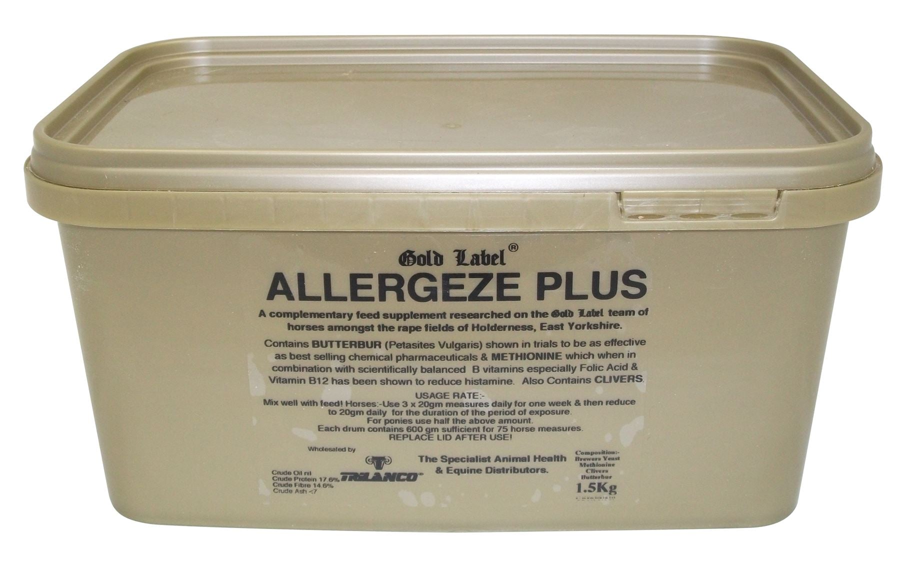 Shop now for the Just Horse Riders' Gold Label Allergeze Plus. This product is a natural blend from Gold Label, designed to provide nutritional support for your horse's skin and coat.
