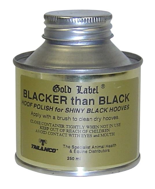 Shop now at Just Horse Riders for the Gold Label Blacker Than Black, a transformative cosmetic black hoof varnish that's designed to give your horse's hooves an instant, long-lasting black shine. As a quick-drying solution, this varnish is perfect for those last-minute touch-ups before a show or event. Apply it effortlessly with the provided brush to clean, dry hooves and watch as they transform into glossy black beauties. When it's time for removal, simply use a varnish remover and follow up with a hoof preparation such as hoof oil to maintain the health and beauty of your horse's hooves. Enjoy our quick dispatch and delivery service when you order today. For any queries, feel free to contact us and experience our high-quality customer service.