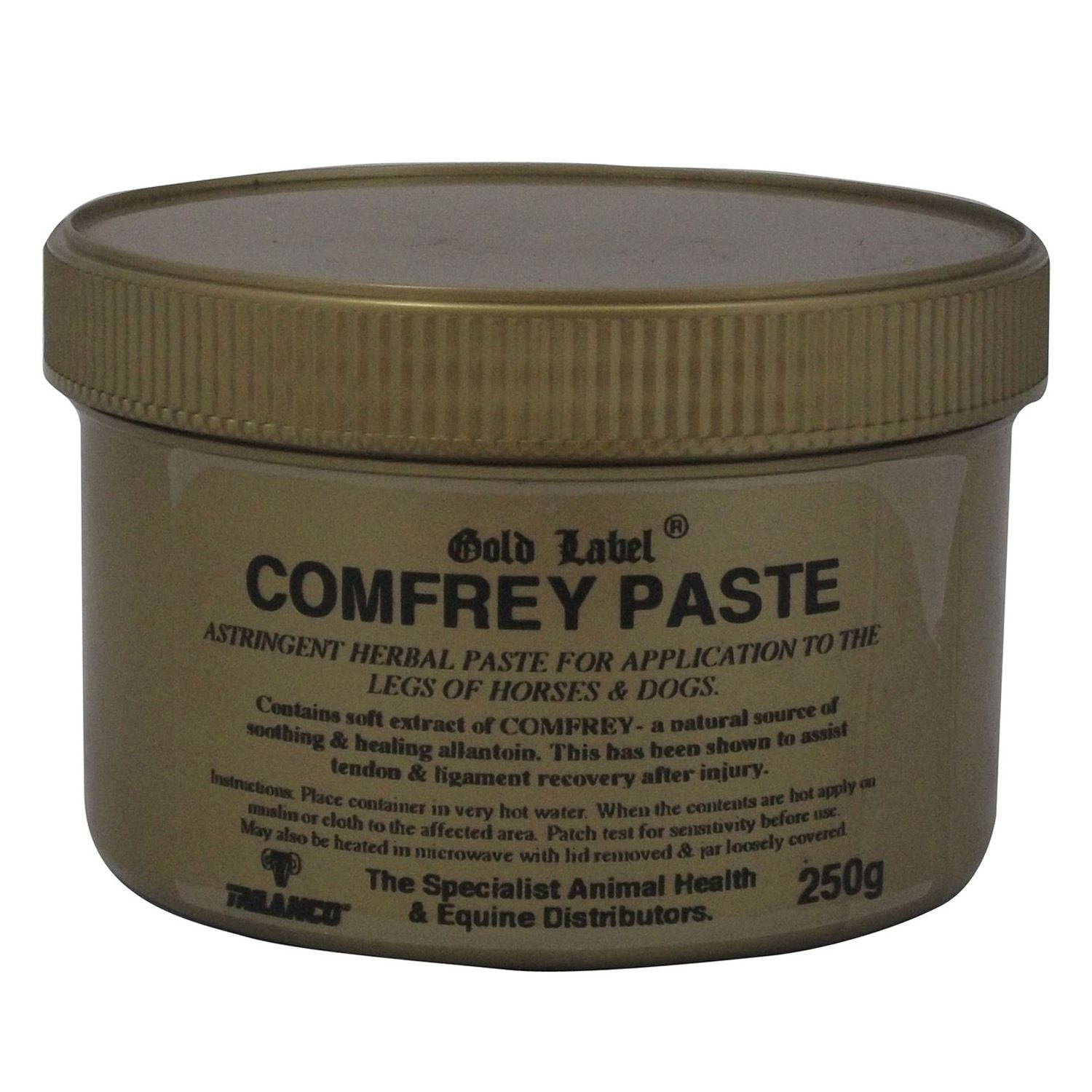 Shop now at Just Horse Riders for the Gold Label Comfrey Paste. This premium product, sourced from Gold Label, is crafted with comfrey, a traditional ingredient known for its drawing properties. The paste can be heated via microwave for a warm application, offering a more effective and convenient solution than traditional kaolin methods.