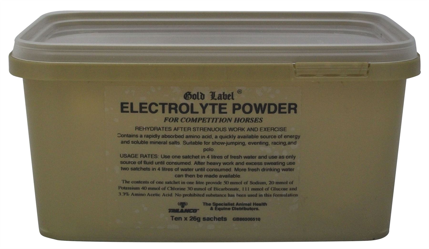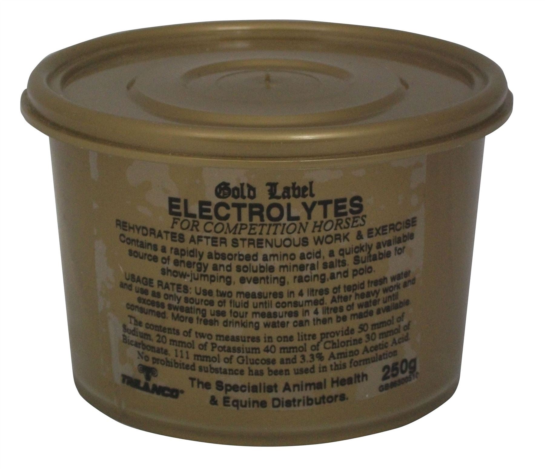 Shop now at Just Horse Riders for the Gold Label Electrolytes. Perfect for replenishing your horse's minerals after a strenuous workout or a competitive event. This exceptional product is not only rich in soluble amino acids to combat muscle fatigue, but also includes dextrose to restore blood sugars that have been depleted during physical exertion. Moreover, it delivers an added boost of potassium which is vital for your horse's health and performance. With our swift dispatch and delivery, you can rely on us to get this essential supplement to you promptly. Any queries? Feel free to reach us at our contact page for top-notch customer service.