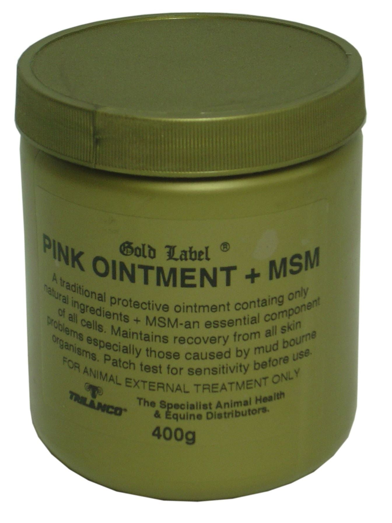 Gold label have reformulated the traditional pink application which benefits dry or cracked skin. Ideal for use on legs where its greasy base can help maintain the skin in the presence of mud-borne diseases. A safe antibacterial potentiated by the presence of MSM.