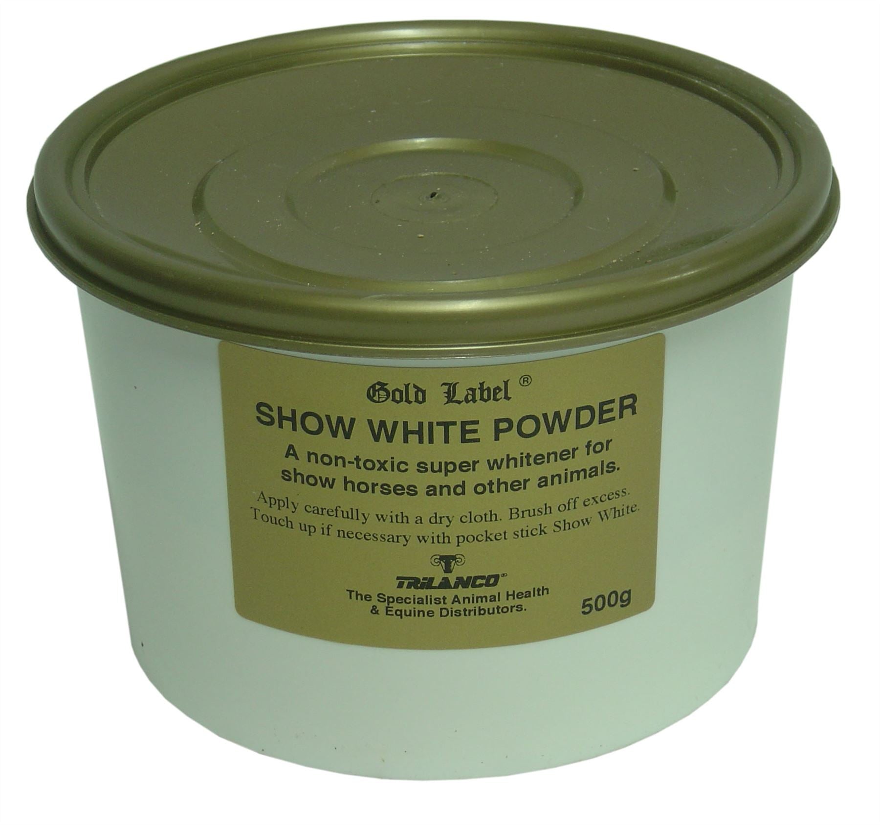 Shop now for the superior Gold Label Show White Powder at Just Horse Riders. This premium product is a magnificent whitener, specifically designed for the socks and blazes of your show animals. Unlike other products, it won't wash off at the first sight of rain, ensuring your horse maintains a pristine appearance no matter the weather. The formula is easily removed with warm water when necessary, providing convenience and ease of use. Safe and non-allergic, it's the perfect choice for all horse breeds, including shires and heavy horse feather. Experience quick dispatch and delivery, and top-notch customer service when you order from us. If you have any queries, don't hesitate to contact us at Just Horse Riders.