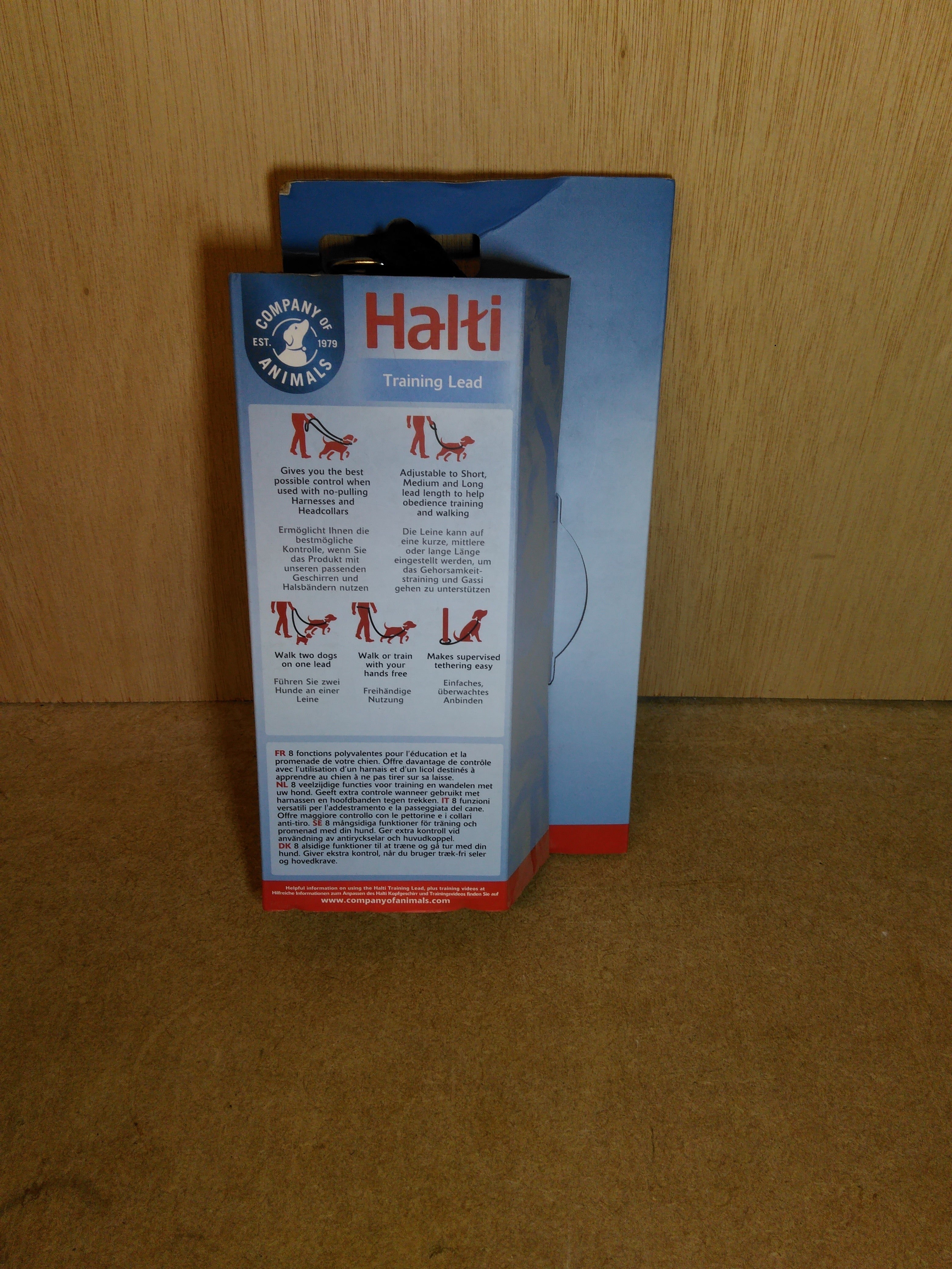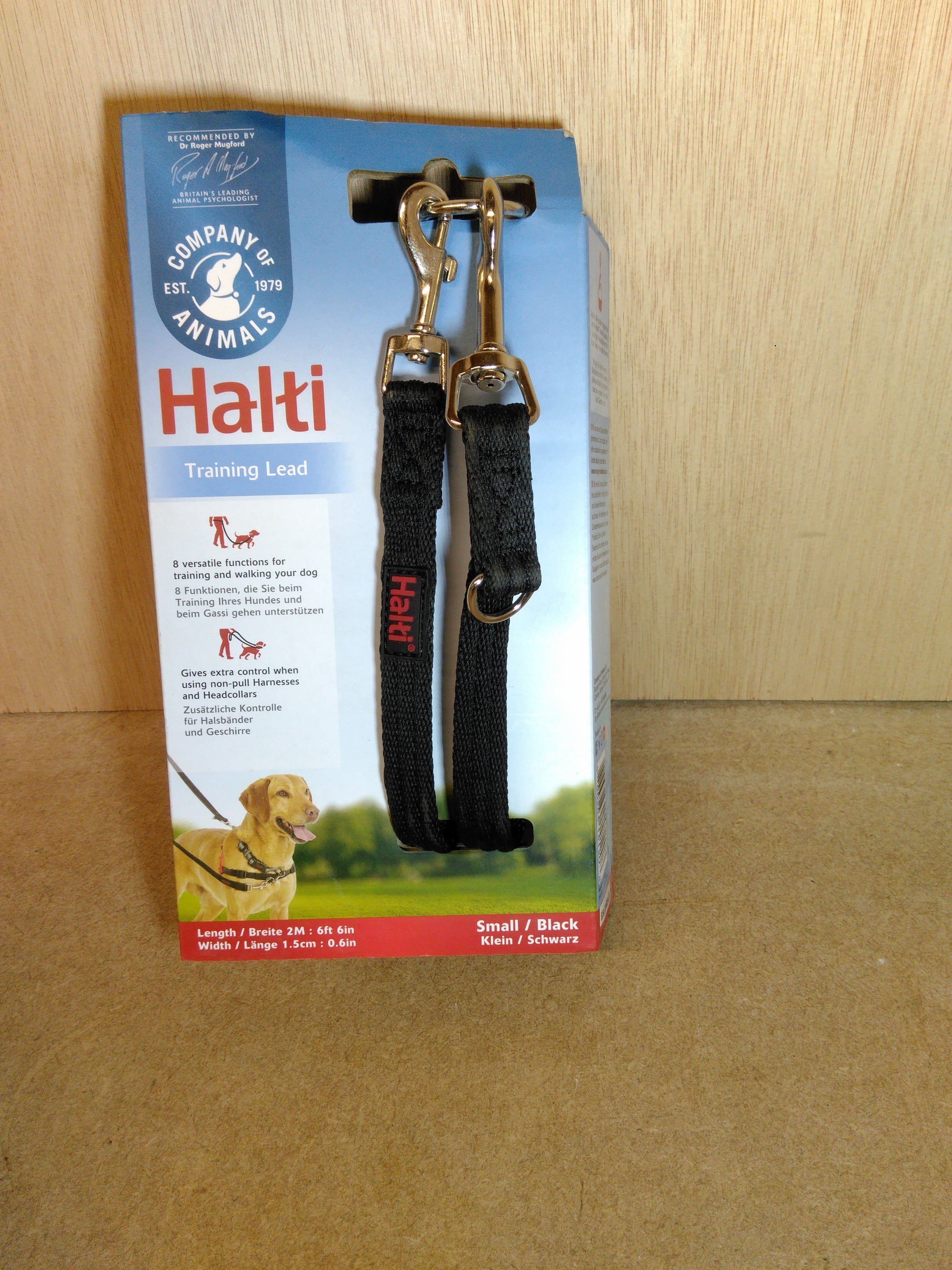 The Halti Training Lead is a brand new, high-quality dog training lead designed for effective control and comfort during walks. Measuring 2m in length and 1.5cm in width, this black lead is perfect for small dogs. Although it is a discontinued item, it remains fully functional and ready for use.