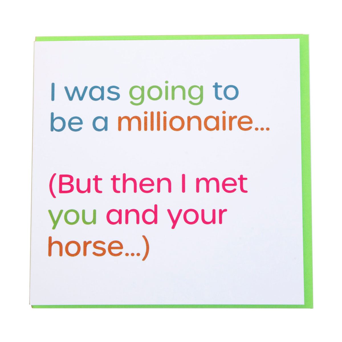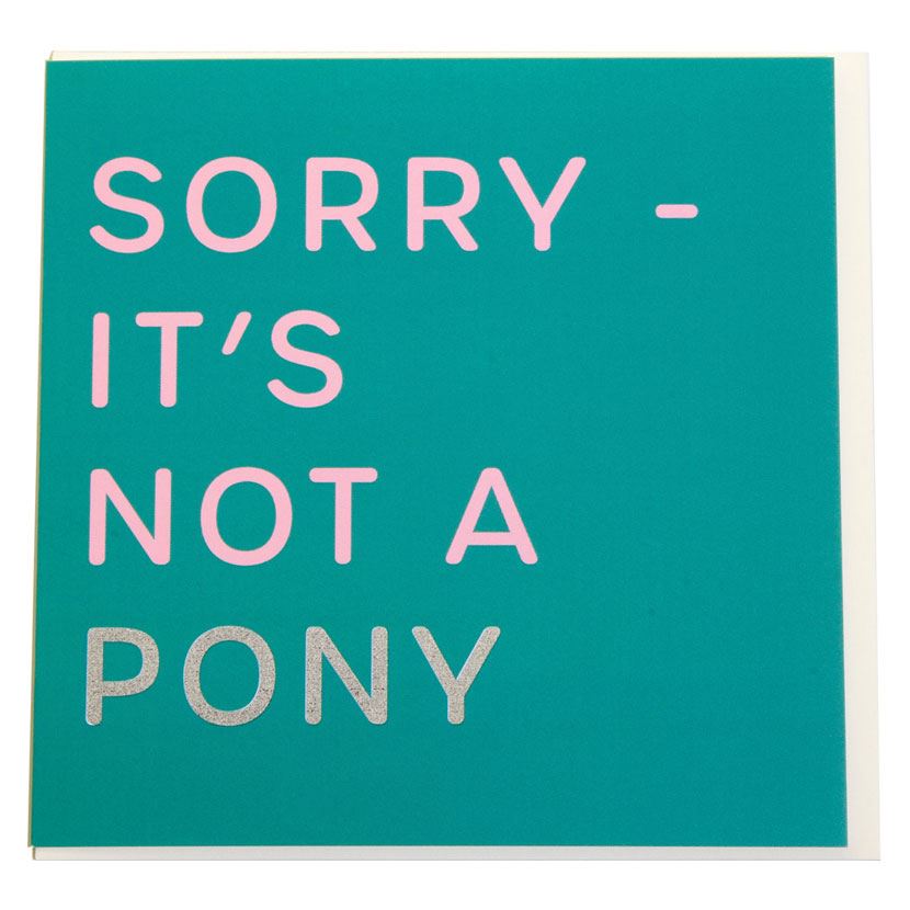 A humourous foiled card from the Gubblecote 'Wordy' range. Supplied with a contrasting envelope. Blank inside. Individually cellophane wrapped.