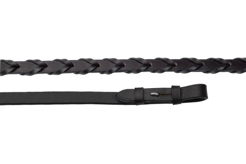 English leather laced reins with stainless steel hook stud billets. Handcrafted from the finest English leather stainless steel fittings. Length 54", Width 5/8"