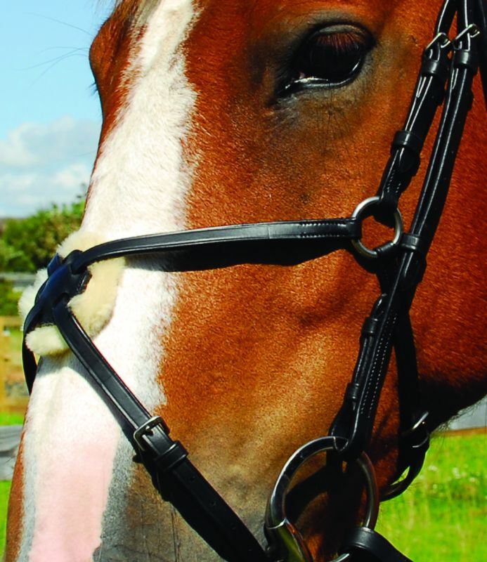 Heritage English Leather Bridle with Mexican Noseband, Soft Feel Rubber Reins Included. Handcrafted from the finest english leather with stainless steel fittings. Includes soft feel rubber reins