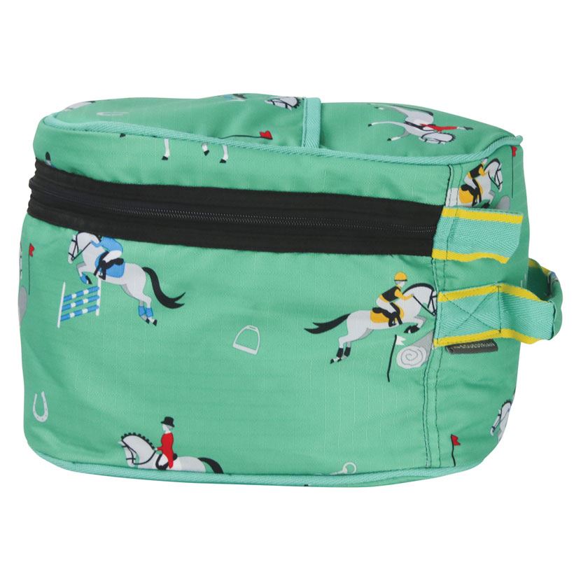 The perfect accessory to keep you riding hat safe, secure and protected. This handy hat bag in the limited edition competition ready print is made from durable, ripstop waterproof material and features a practical zip fastening for security, handy outer pocket secured with touch tape fastening and easy carry handle.